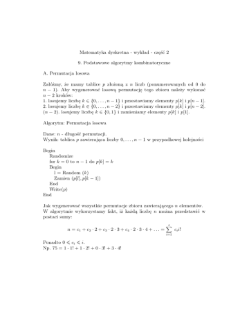 n − 1). Aby wygenerować losową permutację tego zbioru należy wykonać