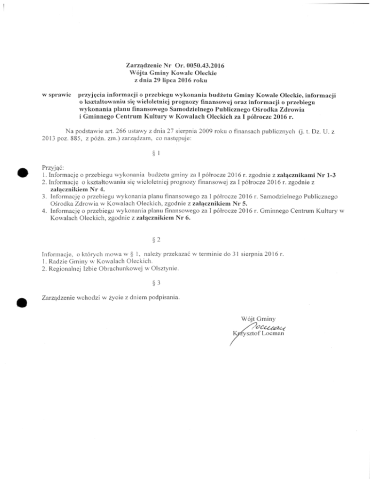 Załącznik Nr 1 do Zarządzenia Nr Or.0050.43.2016 Wójta Gminy Kowale Oleckie z dnia 29 lipca 2016 r.