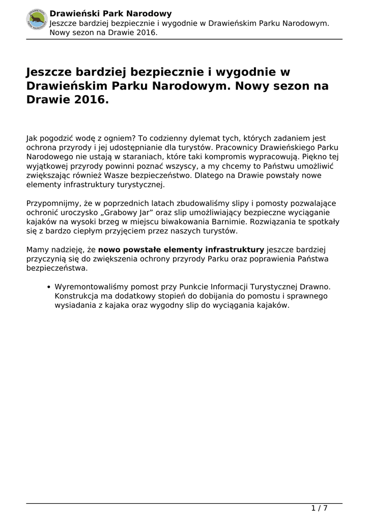 Jeszcze bardziej bezpiecznie i wygodnie w Drawieńskim Parku