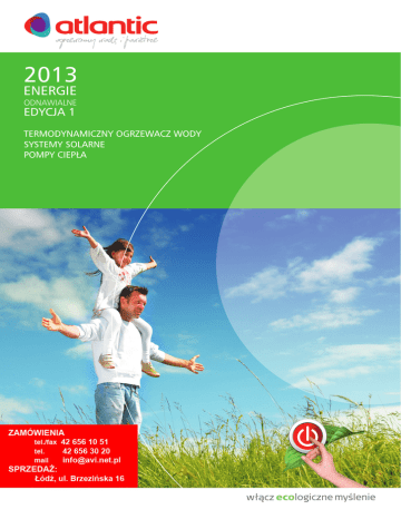2013 ENERGIE ODNAWIALNE EDYCJA 1 TERMODYNAMICZNY OGRZEWACZ WODY SYSTEMY SOLARNE POMPY CIEPŁA JAK MĄDRZE WYKORZYSTAĆ ENERGIĘ SŁOŃCA? Słońce dostarcza nie tylko światła, jest również źródłem czystej energii. Charakteryzuje się ona tym, że jest cicha, darmowa i bardzo ekologiczna. Pozwala znacząco zredukować emisję gazów cieplarnianych do atmosfery. Jej wykorzystywanie zapewnia nam komfort cieplny zarówno w lecie, jak i w zimie. Kolektory słoneczne w połączeniu z systemami solarnymi przetwarzają energię promieni słonecznych w ciepło właściwe wykorzystywane do ogrzewania wody użytkowej, a także do wspomagania systemu ogrzewania centralnego. Prawidłowo zaprojektowany system solarny jest w stanie zaspokoić blisko 70% rocznego zapotrzebowania na ciepłą wodę niezbędną w gospodarstwie domowym. Rozkład promieniowania słonecznego w ciągu roku charakteryzuje się dużą zmiennością. Położenie geograficzne Polski gwarantuje około 1100 kWh/m² energii słonecznej w skali roku, przy średnim natężeniu promieniowania na poziomie 400 W/m². Kolektory słoneczne wychwytują energię słoneczną nawet wówczas, gdy słońce przykryte jest chmurami. Promieniowanie rozproszone nie ma wprawdzie tak wysokiej skuteczności jak promieniowanie bezpośrednie, jednak wystarcza do efektywnej pracy kolektorów. System solarny szybko się amortyzuje. Zwrot inwestycji następuje już po kilku latach przynosząc wymierne korzyści ekonomiczne. Niezawodność, wysoka sprawność, niskie koszty eksploatacji oraz system dotacji Narodowego Funduszu Ochrony Środowiska i Gospodarki Wodnej sprawiają, iż systemy solarne stają się coraz częściej stosowanym rozwiązaniem. Nie bez znaczenie pozostaje fakt, że paliwa kopalniane wcześniej czy później ulegną wyczerpaniu, dlatego tak szybko wzrasta popularność odnawialnych źródeł energii. ilość domowników rodzaj komfortu standard duży komfort ilość ciepłej wody użytkowej* 50 l/osobę pojemność zasobnika liczba paneli 300 2 300 3 400 3-4 300 3 400 3-4 85 l/osobę powyższe dane mają charakter jedynie szacunkowy * ilość wody o temp. 40°C (zimna woda o temp. 10°C) Na co należy zwrócić uwagę? Powierzchnia kolektorów słonecznych w głównej mierze powinna być dopasowana do naszych indywidualnych potrzeb energetycznych oraz zapotrzebowania na ciepłą wodę użytkową. Wielkość oraz rodzaj instalacji dobiera się z uwzględnieniem ogólnie przyjętych wytycznych: – przeciętne dzienne zapotrzebowanie na ciepłą wodę użytkową to około 50 litrów/osobę (woda o temperaturze 45°C), – szacunkowa powierzchnia kolektorów w przeliczeniu na osobę wynosi od 1,0 do 1,5 m²/osobę. Idealnym rozwiązaniem jest zaplanowanie systemu solarnego na etapie projektowania domu, co znacznie obniża jego koszty. System solarny możemy zastosować na dowolnym rodzaju budynków mieszkalnych, niezależnie od jego architektury. Ważne jest również uwzględnienie ilości domowników, warunków lokalnych (ilość i rodzaj odbiorników ciepła, orientacja budynku, kąt nachylenia dachu, zacienienie, stopień nasłonecznienia) oraz przyzwyczajeń i preferencji użytkownika co do sposobu wykorzystania energii. Najbardziej optymalnym rozwiązaniem jest umieszczenie kolektorów na dachu skierowanych w kierunku południowym. Odchylenia od kierunku południowego w granicach 45° nie stanowią specjalnego problemu. Przy niemożności optymalnego usytuowania, niedobór promieniowania możemy zrekompensować odpowiednio większą ilością kolektorów słonecznych. właściwy montaż 2 atlantic niewłaściwy montaż System solarny można zamontować w prawie każdym gospodarstwie domowym, niezależnie od tego jaki system grzewczy wykorzystywany jest aktualnie. Jak działa system solarny? kolektor kolektor słoneczny: Energia słoneczna pobierana jest przez absorber kolektora solarnego umieszczony na dachu. Kolektor ten zabezpieczony jest taflą szkła hartowanego odpornego nawet na gradobicie, która blokuje odbijanie promieni słonecznych od absorbera, przepuszczając zarówno zewnętrze promieniowanie pośrednie, jak i te padające pod kątem. Dolna część kolektora osłonięta jest izolacją o bardzo niskim współczynniku przenikalności, co zapewnia minimalne straty pozyskiwanej energii. Ciepło, jakie pobiera absorber zbudowany z miedzianych rurek, ogrzewa czynnik grzewczy (glikol) znajdujący się w jego wnętrzu. uszczelka EPDM rama aluminIowa stacja solarna szkło hartowane 4mm obudowa aluminIowa zasobnik c.w.u. wymiennik ciepła absorber izolacja manometr panel sterowania stacja solarna: Zadaniem stacji solarnej jest sterowanie całym systemem solarnym poprzez kontrolę przepływu w całym obiegu instalacji. Stacja solarna poprzez jej regulator mierzy temperaturę czynnika grzewczego w kolektorach, oraz temperaturę wody użytkowej we wnętrzu zasobnika. Jeśli temperatura w kolektorze przewyższa temperaturę wody w zasobniku c.w.u., układ wymiany ciepła załącza się i pompa obiegowa zaczyna tłoczyć ogrzany czynnik grzewczy z kolektorów do wymiennika spiralnego znajdującego się we wnętrzu zasobnika c.w.u. zawór napełniający pompa cyrkulacyjna regulator przepływu zawór spustowy naczynie zbiorcze odstojnik zasobnik ciepłej wody użytkowej: wymiennik górny grzałka elektryczna deflektor zimnej wody wymiennik dolny zawór bezpieczeństwa sonda temperatury Zadaniem zasobnika c.w.u. jest zmagazynowanie pozyskanej przez kolektory energii i przekazanie jej użytkownikowi w postaci ciepłej wody. Najczęściej stosowanym rozwiązaniem jest zasobnik biwalentny, który posiada w swym wnętrzu 2 wymienniki ciepła. Woda użytkowa w jego wnętrzu może być ogrzewana na 3 różne sposoby. Gdy kolektory słoneczne dostarczają nam ciepło, zasobnik zasilany jest poprzez dolny wymiennik (wężownica dolna). Gdy słońce nie dostarcza nam wystarczającej ilości ciepła, zasobnik może być wspomagany poprzez g