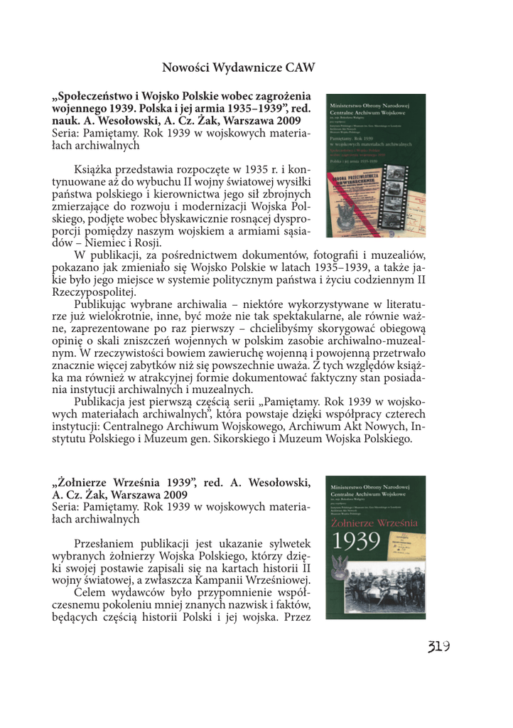 Nowości Wydawnicze CAW - Centralne Archiwum Wojskowe