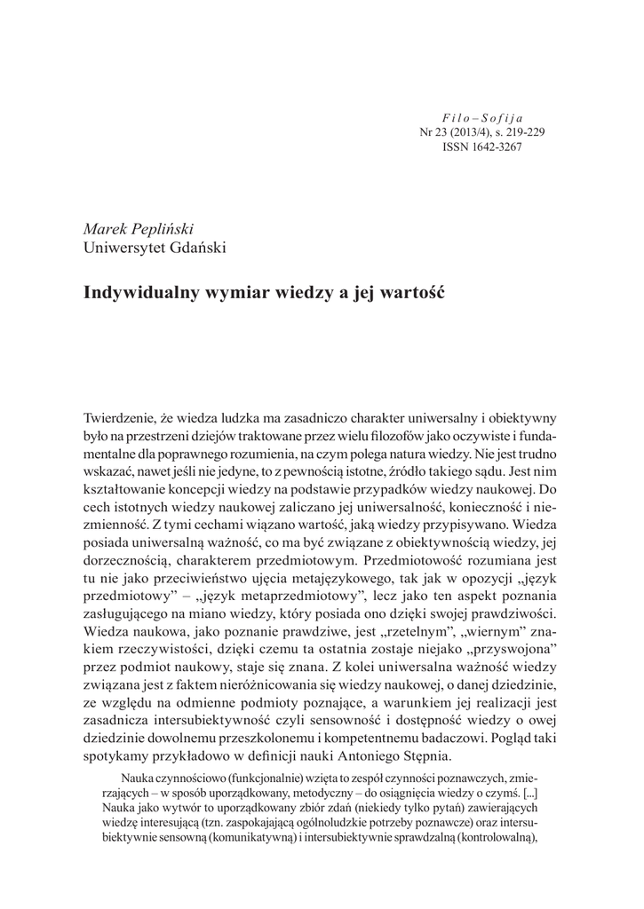 Indywidualny wymiar wiedzy a jej wartość - Filo