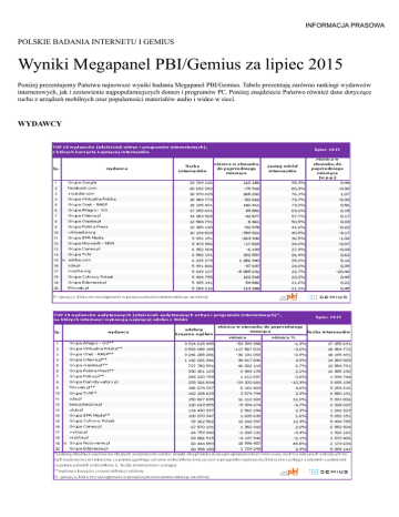 Wyniki Megapanel PBI/Gemius za lipiec 2015