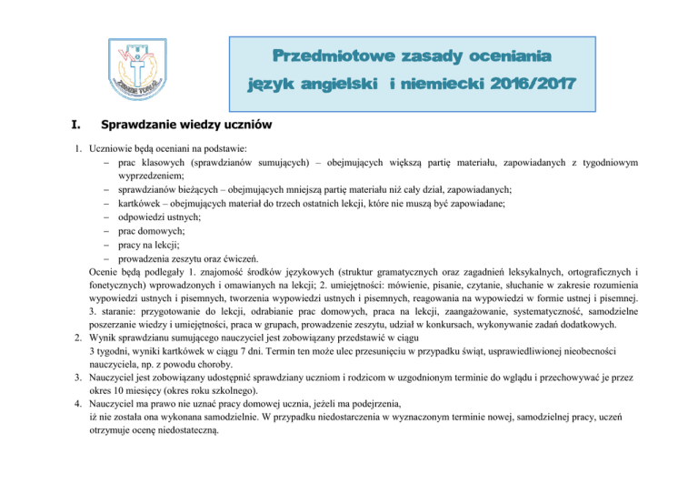 Przedmiotowe zasady oceniania język angielski i niemiecki 2016/2017