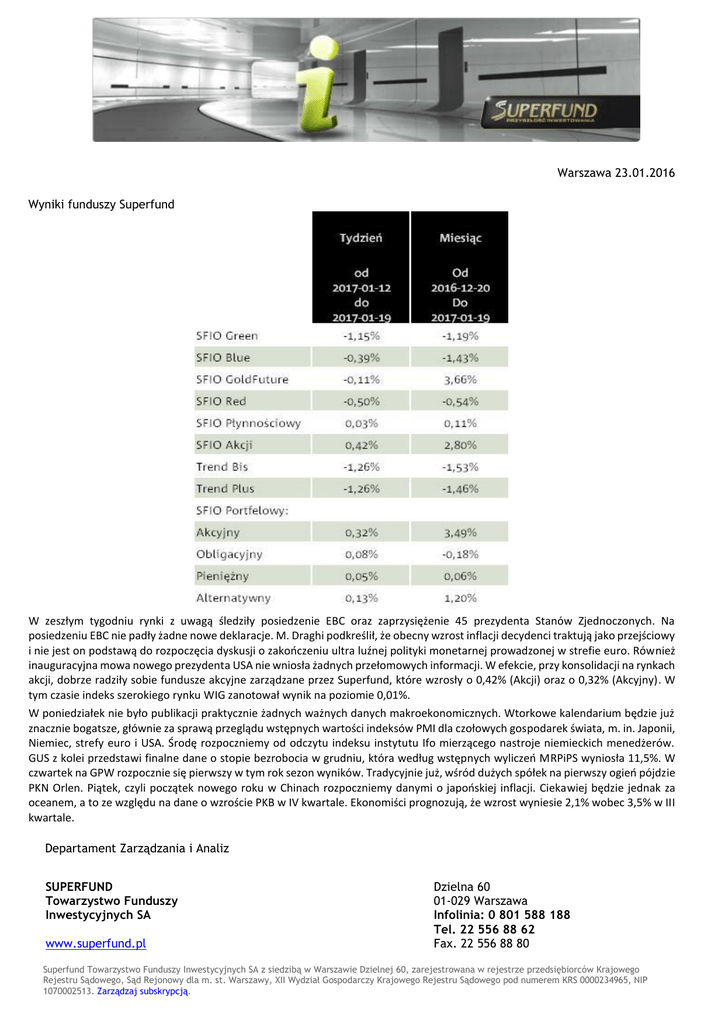 Warszawa 23.01.2016 Wyniki funduszy Superfund W zeszłym