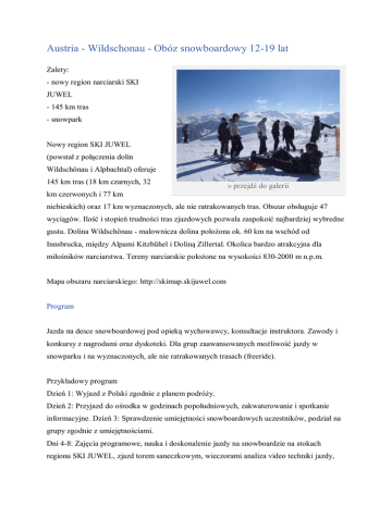 Austria - Wildschonau - Obóz snowboardowy 12-19 lat