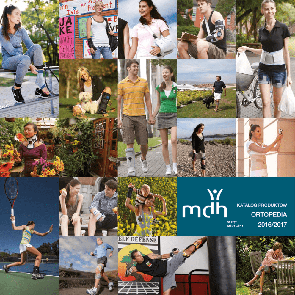 KATALOG PRODUKTÓW ORTOPEDIA 2016/2017 Spełniamy oczekiwania Klientów w zakresie jakości, wzornictwa i nowoczesności naszych produktów i usług. Współpraca z nami gwarantuje sukces biznesowy każdemu Partnerowi. dziedzinie to kluczowy wyznacznik naszych działań. Jesteśmy do Państwa dyspozycji w zakresie kompleksowej obsługi handlowo-doradczej. Zadowolenie naszych Klientów to nasz priorytet. Staniemy się niekwestionowanym liderem Firma mdh Sp. z o.o. już od kilkunastu lat w zakresie największego udziału w portfe- proponuje rozwiązania medyczne w zakre- lu zakupów towarów i usług przez dealerów sie ortopedii i rehabilitacji. Inspirują nas w Polsce oraz innowacyjnym twórcą i wio- Pacjenci i ich potrzeby. W naszej misji zawie- dącym dostawcą wartości w zakresie nie- ra się jakość, design i nowoczesność naszych inwazyjnych rozwiązań ortotyczno-rehabili- produktów. Jesteśmy dumni, że możemy tacyjnych w Europie centralnej, wschodniej pomagać osobom z dysfunkcjami narzą- i południowo-wschodniej a przez to istotnym dów ruchu. Każdego dnia podnosimy jakość uczestnikiem tego rynku w Europie. życia osób potrzebujących - to przynosi nam ogromną satysfakcję i świadomość, że nasza praca ma sens. Dbamy także o interesy naszych Klientów – profesjonalizm w każdej Zespół mdh Sp. z o.o. Aktywność biznesowa spółki jest widoczna w wielu obszarach działalności (produkcja, import, eksport, dystrybucja). Jest producentem obuwia profilaktycznego, artykułów ortotycznych, wytwórcą przedmiotów rehabilitacyjnych. Spółka prowadzi działalność w oparciu o sprzedaż własnych artykułów, posiada umowy wyłączności znanych marek światowych na terenie kraju i Europy, współpracuje aktywnie z kilkuset sklepami sprzętu medycznego w Polsce, eksportuje produkty pod własnym brandem do różnych krajów na świecie. MDH ma największy udział w portfelu zakupowym towarów i usług detalistów medycznych w Polsce. Poprzez konsekwentną realizację strategii buduje pozycję innowacyjnego twórcy i wiodącego dostawcy wartości w zakresie nieinwazyjnych rozwiązań ortotyczno-rehabilitacyjnych w Europie. Dział badawczo-rozwojowy spółki mieści się w Łódzkiej Specjalnej Strefie Ekonomicznej, produkcja odbywa się w Polsce, na Ukrainie, na Litwie, oraz w krajach Bliskiego Wschodu. Przedstawiciele handlowi MDH działają na terytorium Polski. Spółka rozwija dystrybucję i produkcję także na terytorium Rosji, Węgier oraz Niemiec. Oprócz sprzedaży własnych produktów, spółka jest także wyłącznym dystrybutorem wyrobów wiodących firm światowych. Od kilku lat z powodzeniem MDH rozwija sprzedaż eksportową do Irlandii, Wielkiej Brytanii, Rumunii, Grecji, Czech, Bułgarii, Turcji, krajów Beneluksu, USA, a także do Libanu i Arabii Saudyjskiej. Wiele produktów spółki posiada ochronę patentową m.in. w Unii Europejskiej, USA, Kanadzie, Japonii, Korei Południowej. Wszystkie nasze produkty wykonane są z wysokiej jakości materiałów i spełniają wszelkie normy bezpieczeństwa. Nad jakością i rozwojem czuwa zespół konstruktorów, który wciąż udoskonala produkty zgodnie z najnowszymi osiągnięciami technologicznymi i wiedzą medyczną, popartą badaniami, oferując tym samym sprzęt medyczny, który odpowiada funkcjonalnie i wzorniczo na zapotrzebowanie rynku i wpisuje się w światowe trendy branży medycznej. Na potwierdzenie tego MDH posiada system zarządzania jakością zgodny z wymaganiami normy EN ISO 9001 oraz z wymaganiami normy dla wytwórców i dystrybutorów wyrobów medycznych EN ISO 13485 w zakresie projektowania, produkcji, dystrybucji oraz serwisu wyrobów ortopedycznych i rehabilitacyjnych. Nasze hasło brzmi „Wprawiamy świat w ruch”, co przekłada się nie tylko na pomoc osobom z dysfunkcjami ruchu, ale także na nasze zaangażowanie i aktywność handlową skierowaną do naszych Klientów. Profesjonalizm w każdej dziedzinie to kluczowy wyznacznik naszych działań. Nasza firma swój ciągły rozwój potwierdza licznymi nagrodami i certyfikatami. Między innymi zostaliśmy zaproszeni do programu Najwyższa Jakość Quality International 2010 przez Media PRess, wydawcę cyklu gospodarczego „Forum Biznesu” w „Dzienniku Gazecie Prawnej”. Złote Godło otrzymaliśmy w dwóch kategoriach - system zarządzania i produkt w grupie powyżej 100 pracowników. Jury konkursu oceniało nasz system diagnostyczny Memo zastosowany w obuwiu dla dzieci oraz procesy zarządzania jakością w obszarze projektowania i tworzenia wyrobu, zarządzania personelem oraz informacji zwrotnych z rynku. Kolejną nagrodą jaką otrzymaliśmy jest Eurocertyfikat 2010 w kategorii „Certyfikat Zarządzania Firmą zgodny z systemami jakości”. Jest to europejskie wyróżnienie przyznawane przedstawicielom kadry zarządzającej wyższego szczebla, stanowiące wyraz uznania Kapituły Konkursowej dla sprawnego i efektywnego zarządzania. Nasza firma została wyróżniona także przez firmę Dun & Bradstreet „Certyfikatem Wiarygodności Biznesowej” za najwyższą ocenę stabilności według kryteriów przyjętych przez D&B Poland. D&B to czołowa instytucja finansowa, która już od ponad 169 lat dostarcza usługi i wiedzę niezbędne do podejmowania pewnych i bezpiecznych decyzji biznesowych. Certyfikat Wiarygodności Biznesowej to prestiżowe wyróżnienie nadawane przez Dun & Bradstreet Poland. Do grona uhonorowanych mogą należeć wyłącznie firmy o najwyższej i wysokiej ocenie stabilności wystawianej według D&B Poland. Wyróżnieni certyfikatem, to firmy o danych finansowych dających gwarancję na wysoki poziom rentowności, zdolności i płynności finansowej, których poziom zadłużenia oraz zarejestrowanych przeterminowanych płatności jest znikomy. Certyfikat Wiarygodności Biznesowej daje gwarancję, że jego właściciel jest wiarygodnym kontrahentem, z którym warto nawiązywać kontakty handlowe. Certyfik