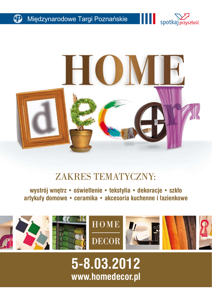 ZAKRES TEMATYCZNY: wystrój wnętrz • oświetlenie • tekstylia • dekoracje • szkło artykuły domowe • ceramika • akcesoria kuchenne i łazienkowe 5-8.03.2012 www.homedecor.pl DOCENIONE PRZEZ WYSTAWCÓW Targi HOME DECOR odbywają się w formule biznesowej. Atutem targów jest możliwość skutecznego dotarcia do grupy docelowych klientów: m.in. przedstawicieli marketów, sieci handlowych i hotelowych, hurtowników, detalistów, projektantów, architektów wnętrz i deweloperów. „Klienci doceniają stałą obecność na targach. My sobie te targi chwalimy!” – Stefan Czarnowski, Ridex Dekoracja „Spotkanie na targach to nie tylko sprzedaż. To często nawiązywanie bliższych kontaktów.” – Joanna Rozumek, Gerster „Pierwsze dwa dni bardzo udane! Szczególnie pierwszy dzień. Wydaje mi się, że jest to związane z propozycją organizatorów dotyczącą prelekcji, szkoleń i eventów powiązanych z całą imprezą.” – Paweł Grudzień, ADO „Jesteśmy bardzo zadowoleni, dlatego że rzeczywiście nasze stoisko odwiedziło bardzo wielu projektantów wnętrz.” – Jolanta Kreczmańska, Kalmar „Klient może podejść do stoiska, zobaczyć towar, dotknąć jak wygląda, czego w internecie nie ma, nie ma takiej możliwości.” – Marzena Marczak, Hanipol DOCENIONE PRZEZ ZWIEDZAJĄCYCH 30% Na targi licznie przyjeżdżają przedstawiciele handlu i sektora usługowego związanego z branżą wystroju wnętrz 20% EKONOMICZNE Powierzchnia wystawiennicza już od 215 zł/m² 25% Stoisko z zabudową – 6 m² już od 2000 zł 15% 10% BIZNESOWE 5% Indywidualny odbiorca Sklep internetowy Studio projektowe Inwestor Sklep detaliczny Sieć handlowa Centrum handlowe 0 Targi HOME DECOR 2012 odbędą się równocześnie z targami MEBLE POLSKA – największymi w kraju targami meblowymi o formule kontraktacyjnej. Organizacja w jednym miejscu i czasie targów wyposażenia wnętrz i targów meblowych pozwoli przedstawicielom obydwu branż na spotkanie, w nowym, jeszcze bardziej biznesowym otoczeniu! • ceny promocyjne dla zgłoszeń w terminie do 30 października • wczesne zgłoszenie – lepsza lokalizacja • pełna oferta uczestnictwa w targach dostępna po rejestracji na stronie www.homedecor.pl kontakt: Dyrektor projektu: Kontakt dla wystawców: Kontakt dla zwiedzających: Józef Szyszka tel. 61 869 23 03 e-mail. [email protected] Karolina Kobryń tel. 61 869 21 72 e-mail: [email protected] Jakub Wysocki Tel. 61 869 21 59 e-mail: [email protected]