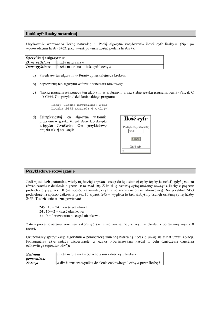 Tym razem prezentujemy rozwiązanie w postaci oddzielnej funkcji ilosccyfr: