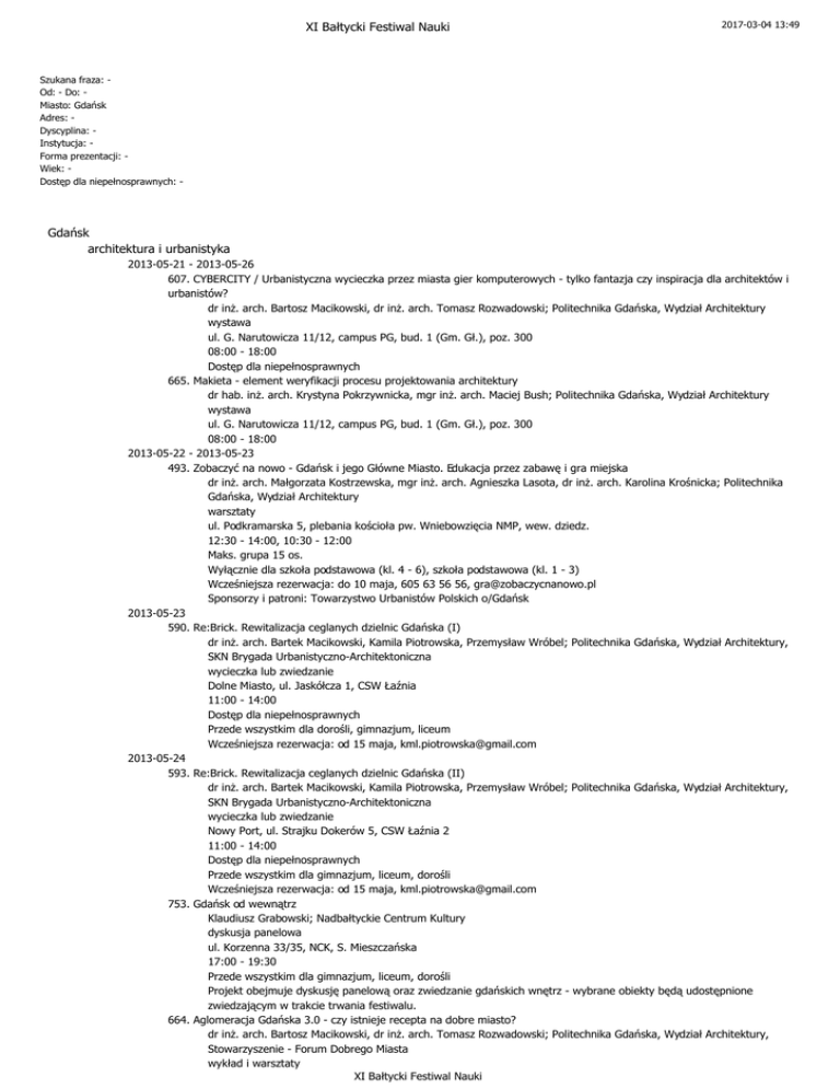Gdańsk architektura i urbanistyka XI Bałtycki Festiwal Nauki