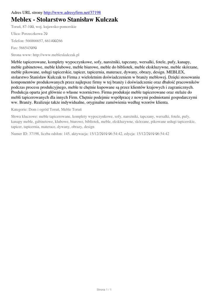 Meblex - Stolarstwo Stanislaw Kulczak, Torun