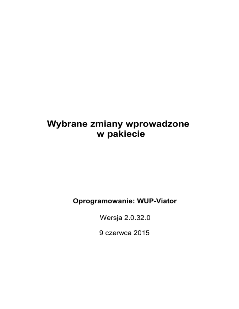 Wybrane zmiany wprowadzone w pakiecie Oprogramowanie: WUP-Viator Wersja 2.0.32.0 9 czerwca 2015 Wybrane zmiany wprowadzone w pakiecie Metryka dokumentu: Autor: Patrycja Lewandowska Tytuł: Wybrane zmiany wprowadzone w pakiecie Komentarz: Liczba stron: 37 Data utworzenia: 2015-06-09 Data ostatniej wersji: 2015-06-09 Historia zmian: Data Autor Wersja Opis i referencja do poprzedniej wersji 2015-06-09 Patrycja Lewandowska 01 Utworzenie dokumentu Przeglądy: Data Imię i Nazwisko Stanowisko Referencja do dokumentu z uwagami 2015-06-09 Izabela Orlef Główny Projektant Brak uwag Data Imię i Nazwisko Stanowisko/Firma Referencja do dokumentu z uwagami 2015-06-09 Katarzyna Palka Kierownik produkcji Brak uwag Data Imię i Nazwisko Stanowisko Miejsce/Firma 2015-06-09 Bernadeta Filip Administrator projektu MPiPS Zatwierdzenie: Dystrybucja: Wersja: 2.0.32.0 Data: 2015-06-09 Plik: zmiany_20320_WUP-Viator MPiPS Strona: 2 z 37 Wybrane zmiany wprowadzone w pakiecie Spis treści 1. KSZS - Koordynacja Systemów Zabezpieczenia Społecznego 4 1.1. Dodano obsługę sedów z serii H003-H013, H065 oraz H066. 4 1.2. Dodano kolumnę "Kraj ostatniego zatrudnienia" na oknie decyzji. 5 1.3. Zablokowano możliwość wysyłania SEDU020 przez filię WUP. 6 1.4. Zmieniono sposób podpowiadania okresów na oknach związanych z obsługą SEDU020. 7 Dodano możliwość edycji danych osoby z poziomu spraw dla osób. 11 1.5. 2. PPiE - Pośrednictwo Pracy i EURES 2.1. 2.2. 2.3. 3. 13 Dostosowano obsługę danych i przesył Krajowych ofert Pracy do Syriusza. 13 Dodano możliwość rejestracji i obsługi umów zawieranych przez Marszałka z realizatorem działań aktywizacyjnych oraz PUP. 21 Dodano usługę udostępniającą do PUP dane z umowy z realizatorem i/lub dane realizatora oraz import skierowań z PUP. 30 SPR-Sprawozdawczość 33 3.1. Dodano nową wersję sprawozdania MPiPS-07. 33 3.2. Dodano nową wersję sprawozdania MPiPS-01 Załącznik 2. 35 3.3. Dodano nową wersję sprawozdania MPiPS-01 Załącznik 3. 35 3.4. Dodano nową wersję sprawozdania MPiPS-01 Załącznik 7. 36 3.5. Rozszerzono funkcjonalność edycji wyników sprawozdań o sprawozdania posiadające szablon ze zmienną liczbą wierszy. 37 Wersja: 2.0.32.0 Data: 2015-06-09 Plik: zmiany_20320_WUP-Viator MPiPS Strona: 3 z 37 Wybrane zmiany wprowadzone w pakiecie 1. KSZS - Koordynacja Systemów Zabezpieczenia Społecznego 1.1 Dodano obsługę sedów z serii H003-H013, H065 oraz H066. W module KSZS dodano obsługę nowych formularzy: 1. 2. 3. 4. 5. 6. 7. 8. 9. 10. 11. SEDH003 SEDH004 SEDH005 SEDH006 SEDH007 SEDH010 SEDH011 SEDH012 SEDH013 SEDH065 SEDH066 Dla powyższych formularzy: 1. Dodano definicje nowych rodzajów zaświadczeń w słowniku rodzaj zaświadczenia(SL0002L) 2. Dostosowano okno formularzy (KS0211M) do obsługi SEDH003 - SEDH013 3. Dodano proces tworzenia formularzy obsługujący poszczególne pola 4. Dodano nowe wydruki zgodne z wzorami poszczególnych dokumentów otrzymanymi z Departamentu Koordynacji MPiPS Wersja: 2.0.32.0 Data: 2015-06-09 Plik: zmiany_20320_WUP-Viator MPiPS Strona: 4 z 37 Wybrane zmiany wprowadzone w pakiecie 1.2 Dodano kolumnę "Kraj ostatniego zatrudnienia" na oknie decyzji. W oknie: Decyzje (KS0160L) dodano kolumnę: Kraj ostatniego zatrudnienia za granicą Kolumna służy do łatwiejszej interpretacji danych podczas tworzenia sprawozdania KSZS-Transfery. Kraj ostatniego zatrudnienia zagranicą pobierany jest z okresów zaliczanych. Jest to kraj, który jest różny od PL (Polska), nie jest pusty i jest ostatnim okresem zaliczanym przed datą rejestracji na decyzji. Wersja: 2.0.32.0 Data: 2015-06-09 Plik: zmiany_20320_WUP-Viator MPiPS Strona: 5 z 37 Wybrane zmiany wprowadzone w pakiecie 1.3 Zablokowano możliwość wysyłania SEDU020 przez filię WUP. Ze względu na wysyłanie cząstkowych dokumentów SEDU020 przez użytkowników wojewódzkich urzędów pracy do jednostki MPiPS, zablokowana została funkcja wysyłania dokumentów SEDU020 dla filii WUP. Dokumenty cząstkowe tworzone są w celu weryfikacji danych wprowadzanych w filiach wojewódzkich urzędów pracy i nie powinny być przesyłane do jednostki nadrzędnej. W tym celu, w oknie Sprawy (KS0200L), w kontekście urzędu, przycisk 'Wyślij do MPiPS' został zablokowany dla spraw utworzonych w filii WUP. Przycisk pozostał aktywny tylko dla głównych jednostek WUP. Wersja: 2.0.32.0 Data: 2015-06-09 Plik: zmiany_20320_WUP-Viator MPiPS Strona: 6 z 37 Wybrane zmiany wprowadzone w pakiecie 1.4 Zmieniono sposób podpowiadania okresów na oknach związanych z obsługą SEDU020. W oknach związanych z obsługą dokumentów SEDU020 zmieniony został sposób podpowiadania i wyboru okresu, za jaki dokumenty mają być tworzone, lub w jakich mają być weryfikowane. Dotychczasowy wybór ‘pierwsze półrocze / drugie półrocze’ zastąpiono kontrolką typu slider – umożliwiającą przeglądanie danych nie tylko za ostatnie 2 półrocza, ale też danych historycznych. Zablokowano natomiast możliwość tworzenia dokumentów na okresy przyszłe. Zmiany wprowadzono w następujących oknach: Sprawdź kompletność dokumentów SED (KS0008L) - zmiana dotyczy jednostki MPiPS Wersja: 2.0.32.0 Data: 2015-06-09 Plik: zmiany_20320_WUP-Viator MPiPS Strona: 7 z 37 Wybrane zmiany wprowadzone w pakiecie Dodaj sprawę (KS0200M) Wersja: 2.0.32.0 Data: 2015-06-09 Plik: zmiany_20320_WUP-Viator MPiPS Strona: 8 z 37 Wybrane zmiany wprowadzone w pakiecie Dodaj SEDU020 (KS0212M) Wersja: 2.0.32.0 Data: 2015-06-09 Plik: zmiany_20320_WUP-Viator MPiPS Strona: 9 z 37 Wybrane zmiany wprowadzone w pakiecie Scal dokumenty U020 (KS0300L) - zmiana dotyczy jednostki MPiPS Wersja: 2.0.32.0 Data: 2015-06-09 Plik: zmiany_20320_WUP-Viator MPiPS Strona: 10 z 37 Wybrane zmiany wprowadzone w pakiecie 1.5 Dodano możliwość edycji danych osoby z poziomu spraw dla osób. Z poziomu spraw dla osób umożliwiono dodawanie nowej osoby oraz modyfikację danych osoby wprowadzonej wcześniej do systemu. Zmiany zost