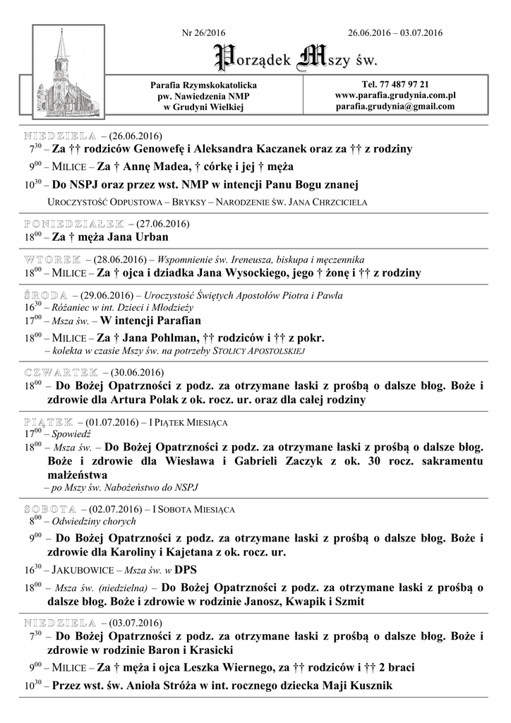 Porządek mszy świętych 2016.06.26