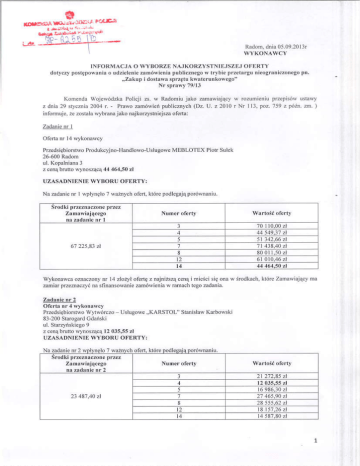 informacja o wyborze najkorzystniejszej oferty ds 79-13