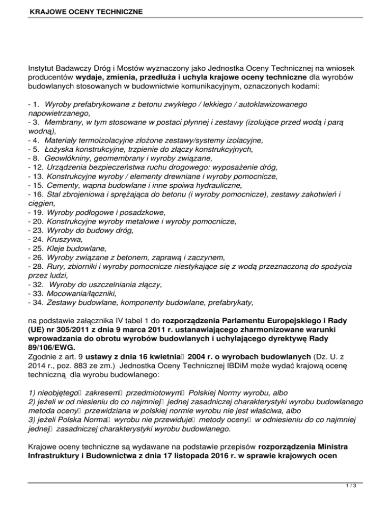 krajowe oceny techniczne - Instytut Badawczy Dróg i Mostów