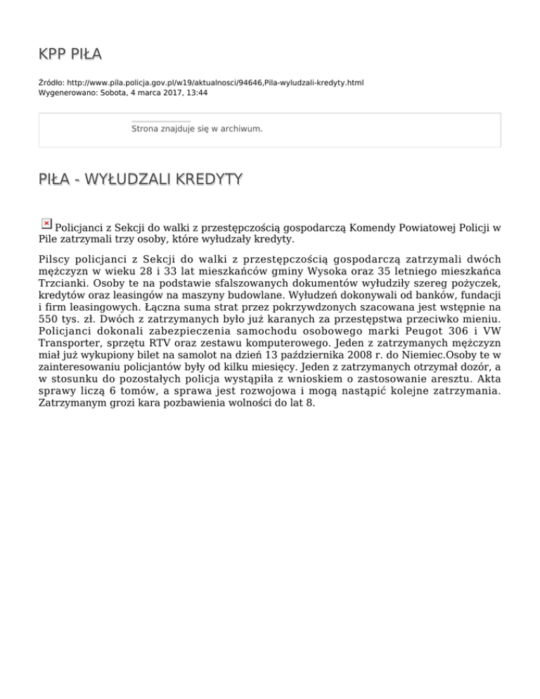 KPP PIŁA PIŁA - WYŁUDZALI KREDYTY