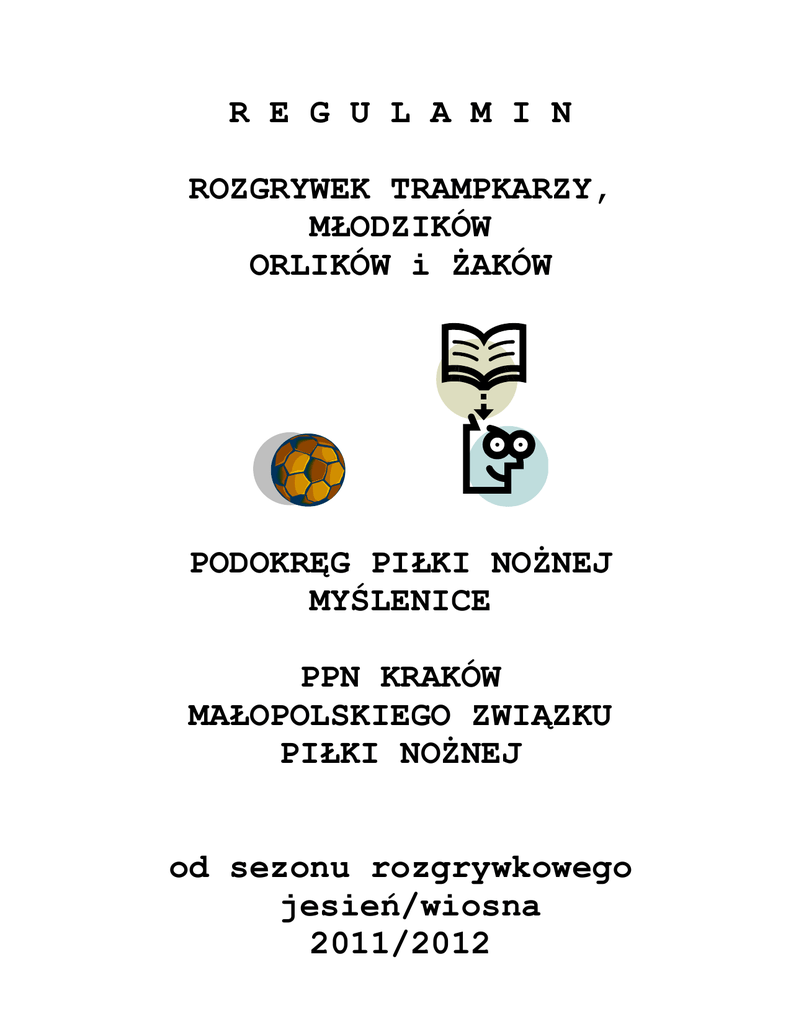 R E G U L A M I N ROZGRYWEK TRAMPKARZY, MŁODZIKÓW ORLIKÓW i ŻAKÓW PODOKRĘG PIŁKI NOŻNEJ MYŚLENICE PPN KRAKÓW MAŁOPOLSKIEGO ZWIĄZKU PIŁKI NOŻNEJ od sezonu rozgrywkowego jesień/wiosna 2011/2012 POSTANOWIENIA OGÓLNE §1 Rozgrywki o mistrzostwo trampkarzy starszych i młodzików mają na celu wyłonić Klubowego Mistrza Krakowa Piłki Nożnej w danej kategorii i grupie wiekowej w danym sezonie a rozgrywki orlików i żaków są rozgrywkami szkoleniowymi. W rozgrywkach mogą brać udział: a. Zgodnie z Ustawą o sporcie z dnia 25.06.2010 roku kluby sportowe posiadające osobowość prawną, będące członkami MZPN. Kluby sportowe mogą posiadać formę stowarzyszenia kultury fizycznej, uczniowskiego klubu sportowego lub spółki akcyjnej. b. inne osoby prawne których statut, umowa albo akt założycielski przewiduje prowadzenie działalności w sporcie w dziedzinie piłka nożna. Zasadniczym celem rozgrywek o mistrzostwo trampkarzy jest szkolenie w formie gier przygotowujących do uczestnictwa zawodników w wyższych klasach rozgrywkowych. §2 Rozgrywki prowadzone są przez Wydział Gier /WG/ i Wdział Dyscypliny /WD/ Podokręgu Piłki Nożnej Kraków MZPN. Zawody rozgrywa się na podstawie przepisów gry w piłkę nożną i obowiązującego regulaminu rozgrywek oraz na podstawie przepisów wydanych przez Departament Piłkarstwa Młodzieżowego przy Polskim Związku Piłki Nożnej. R O Z D Z I A Ł II. BOISKO §3 1. Spotkania mistrzowskie i szkoleniowe, sparingowe winny być rozgrywane na boiskach trawiastych lub na boiskach ze sztuczną nawierzchnią. 2. W przypadku boisk ze sztuczną nawierzchnią wymagana jest zgoda właściwego organu związkowego na rozgrywanie meczów piłkarskich. 3. Spotkania mistrzowskie i sparingowe mogą być rozgrywane wyłącznie na boisku zweryfikowanym dla danej lub wyższej klasy, wskazanym w licencji udzielonej klubowi na dane dwa sezony rozgrywkowe. 4. Protokół weryfikacji boiska sporządza komisja powołana przez Wydział Gier MZPN lub z upoważnienia właściwy terytorialnie OZPN, na wniosek klubu - przed rozpoczęciem sezonu. 5. Ważność weryfikacji określa się na 2 lata, przy czym okres jej ważności winien być zgodny z okresem ważności licencji, udzielonej klubowi na udział w rozgrywkach danej klasy rozgrywkowej. Weryfikacja obiektu może być wcześniej unieważniona, po stwierdzeniu braków lub nie realizowaniu przez klub zaleceń. Brak ważnej weryfikacji boiska jest podstawą do zawieszenia licencji klubu. 6. W razie niekorzystnych warunków atmosferycznych (ulewne deszcze, zalegający śnieg) i uzasadnioną potrzebą oszczędzania nawierzchni boisk trawiastych organ prowadzący rozgrywki może wyrazić zgodę na rozegranie meczu mistrzowskiego na boisku ze sztuczną nawierzchnią, posiadającą ważną weryfikację dla danej bądź niższej klasy rozgrywkowej. 7. Protokół weryfikacji boiska musi być wywieszony w szatni sędziowskiej. 8. Drugi egzemplarz protokołu weryfikacji boiska przechowywany jest w aktach Związku Piłki Nożnej lub właściwego terytorialnie OZPN. 9. Za właściwe przygotowanie boiska do gry odpowiedzialny jest klub, gospodarz zawodów wpisany do terminarza na pierwszym miejscu. 10. Jeżeli sędzia uzna za niezdatne do gry boisko, a klub posiada inną zweryfikowaną do danych rozgrywek płytę boiska, którą sędzia uzna za nadającą się do gry – obowiązany jest udostępnić ją do zawodów. W przypadku nie zastosowania się do tego przepisu sędzia ma obowiązek opisać ten fakt w sprawozdaniu 2 z zawodów. Przedstawiciele obu drużyn mogą ustalić nowy termin rozegrania meczu, jednakże ostateczna decyzja co do weryfikacji wyniku meczu bądź wyznaczenia nowego terminu należy do organu prowadzącego rozgrywki. 11. Klub nie ma obowiązku udostępniać innej płyty boiska przy założeniu, że w danym dniu bądź w dniu następnym na tym boisku są wyznaczone zawody szczebla wyższego lub zawody międzynarodowe. 12. Klub, który nie dopełnił obowiązku właściwego przygotowania boiska i z winy którego zawody nie odbyły się – ponosi konsekwencje regulaminowe w wysokości 100 zł oraz zwrot kosztów przejazdu dla drużyny przeciwnej jeśli zgłosi taki żądanie. 13. Kluby posiadające sztuczne oświetlenie boiska muszą spełniać wymogi PZPN tzn. posiadać oświetlenie o mocy minimum 500 LUX (800 LUX, jeśli planowana jest transmisja telewizyjna). R O Z D Z I A Ł III. ZAWODNICY §4 W zawodach mistrzowskich mogą brać udział zawodnicy urodzeni i potwierdzeni do klubu w następujących kategoriach wiekowych: trampkarz starszy - od 01.01.1997 - do 31.12.1998 młodziki - od 01.01.1999 - do 31.12.2000 orliki - od 01.01.2001 - do 31.12.2002 żaki - od 01.01.2003 – i młodsi Zmiana przynależności klubowej zawodników, którzy ukończyli 12 rok życia a nie ukończyły 16 lat może nastąpić w okresie jednego z dwóch okienek transferowych : od 1 lipca do 30 września od 1 lutego do dnia rozpoczęcia rozgrywek w rundzie wiosennej, w której występuje klub pozyskujący. Na pisemną prośbę rodzica, który chce przenieść swoje dziecko do innego klubu, klub zwalniający musi w ciągu 14 dni załatwić prośbę. Jeżeli klub nie dotrzyma terminu, na prośbę rodzica (opiekuna) decyzję podejmie WG.PPN Kraków MZPN. Zmiana barw klubowych dla zawodników grupy żaków i orlików może być dokonywana dwa razy w roku w sezonie rozgrywkowym (nie obowiązują okienka transferowe). Zawodnicy nowo zgłoszeni, mogą być zgłoszeni i potwierdzeni do klubu poza okienkiem transferowym. Każdy zawodnik musi posiadać pisemną zgodę / oświadczenie / rodzica lub prawnego opiekuna na udział w treningach i zawodach piłkarskich. Zawodnik może być zgłoszony i potwierdzony do klubu jeżeli przedłoży pisemną zgodę rodziców /przedstawicieli ustawowych/ i spełnia warunki wynikające z innych przepisów piłkarskich oraz niniejszych przepisów. Zawodnik, który skończy 7 lat i jeden dzi