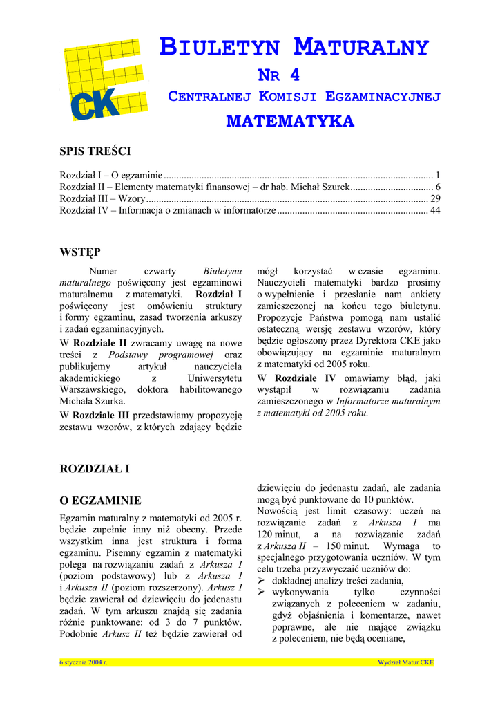 maturalnym z matematyki od 2005 roku.