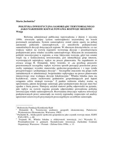 Marta Juchnicka∗ POLITYKA INWESTYCYJNA SAMORZĄDU