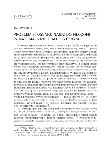 problem stosunku nauki do filozofii w materializmie