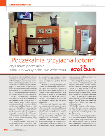 ARTYKUŁ PROMOCYJNY fot. archiwum Royal Canin WETERYNARIA W PRAKTYCE „Poczekalnia przyjazna kotom”, czyli nowa poczekalnia Kliniki Uniwersyteckiej we Wrocławiu Nadrzędnym celem projektu było to, aby zwierzęta, a w szczególności koty, oczekiwały na wizytę w komfortowych warunkach, ograniczających stres. Dr n. wet. Piotr Sławuta, lekarz internista, przyjmujący na co dzień kocich pacjentów, podkreśla, że kot jest zwierzęciem, u którego wpływ stresu na zachowanie jest olbrzymi, co z kolei może przekładać się na wyniki badań, zwłaszcza laboratoryjnych: – U kota zestresowanego, u którego mierzylibyśmy stężenie glukozy we krwi, żeby zdiagnozować cukrzycę, czyli typową chorobę kotów w wieku powyżej średniego, pod wpływem stresu dochodzi do wyrzutu glukozy. Przez to wynik może być kompletnie niewiarygodny. Oczywiście wpływ stresu jest krótkotrwały, ale najczęściej sytuacja wygląda tak, że gdy kot zdenerwuje się w poczekalni, a my będziemy pobierać krew chwilę potem, to wyniki, które otrzymamy, mogą być niewiarygodne. Do redukcji stresu ma przyczynić się nie tylko podział poczekalni na część „psią” i „kocią”, ale także stojaki na ko102 CZERWIEC • 6/2013 www.weterynaria.elamed.pl cie transportery, zapewniające zwierzętom bezpieczne i komfortowe oczekiwanie na wizytę na dogodnej dla nich wysokości. – Koty mają szczególne wymagania – mówi lek. wet Maciej Karwowski z firmy Royal Canin i dodaje: – Zapewnienie kotu pozycji dominującej skutecznie redukuje u niego stres związany z oczekiwaniem na wizytę u lekarza weterynarii, dlatego tak ważne jest, aby koci pacjenci znajdowali się w miejscach usytuowanych nieco wyżej niż kolana właściciela. Do dyspozycji właścicieli psów i kotów oddano również specjalnie zaprojektowane strefy ważenia z elektroniczną wagą, na której mogą zważyć swojego pupila. Czas oczekiwania na wejście do gabinetu właściciele mogą umilić sobie, oglądając filmy edukacyjne, które są wyświetlane na ekranach LCD. Poza tym samo wnętrze poczekalni nabrało klimatu: jest estetyczne, z efektywnymi plakatami informacyjnymi dotyczącymi zdrowia psów i kotów. Znalazło się rów- nież miejsce na modele narządów wewnętrznych zwierząt. – Oprócz wygody kładziemy również silny nacisk na funkcję edukacyjną, jak przystało na uczelnię. Ulotki, plakaty, modele narządów wewnętrznych psów i kotów oraz filmy instruktażowe wyświetlane w poczekalni mają zarówno wypełniać czas oczekiwania na wizytę właścicielom, ale również być interesujące i pomocne dla naszych studentów – podkreśla prof. Józef Nicpoń, kierownik Katedry Chorób Wewnętrznych z Kliniką Koni, Psów i Kotów, z którym projekt był konsultowany. Do każdej zmiany trzeba się przyzwyczaić. Również nowa poczekalnia jest miejscem, które najpierw zaskakuje, a potem nie pozwala myśleć, że kiedyś było inaczej. – Niektórzy z właścicieli, przychodząc tu ze swoimi zwierzętami, są zdziwieni, że jest podział na poczekalnię dla kotów i poczekalnię dla psów, ale generalnie spotykamy się z dobrym przyjęciem i odbiorem. Co prawda mamy jedną re- ARTYKUŁ PROMOCYJNY Poczekalnia Kliniki Uniwersyteckiej Katedry Chorób Wewnętrznych Wydziału Medycyny Weterynaryjnej UP we Wrocławiu zyskała nowe oblicze. A wszystko dzięki firmie Royal Canin, która opracowała i wdrożyła projekt poczekalni idealnie dopasowanej do potrzeb kliniki, personelu, właścicieli pupili, a przede wszystkim samych zwierząt. fot. archiwum Royal Canin WETERYNARIA W PRAKTYCE fot. archiwum Royal Canin fot. M. Cukiernik fot. M. Cukiernik Dwie strefy w poczekalni Dr n. wet. Piotr Sławuta z kocim pacjentem Dr n. wet. Wojciech Hildebrand oraz lek. wet. Maciej Karwowski (firma Royal Canin) jestrację, wspólną dla psów i kotów, ale wprowadziliśmy umawianie pacjentów na konkretną godzinę. Dzięki temu łatwiej jest nam zorientować się, ile czasu trzeba przeznaczyć na wizytę (np. przy pierwszej wizycie i pobraniu szpiku kostnego będzie to 30-40 minut, przy kolejnej już tylko ok. 15). Dzięki temu właściciele nie czekają tak długo w kolejce – twierdzi inż. Monika Bretsznajder, która obsługuje recepcję. Lekarze pracujący w klinice także są zadowoleni z nowatorskiego pomysłu, o czym świadczą słowa dr. Wojciecha Hildebranda: – Na początku podchodziłem do pomysłu stworzenia osobnej poczekalni dla kotów z dystansem, ale teraz widzę, że korzyści jest bardzo wiele i że pomysł się sprawdza. Dobrym rozwiązaniem jest zamontowanie telewizorów z filmami edukacyjnymi. Idealnie byłoby, gdyby był podział wyświetlanych filmów – po stronie dla właścicieli psów – „o psach”, po stronie dla właścicieli kotów – „o kotach”, ale myślę, że jest to kwestia czasu. Być może uda się nam zatrudnić także dodatkową osobę do pracy w recepcji. Dzięki temu wprowadzilibyśmy podział na obsługę właścicieli kotów i właścicieli psów. Projektowi mocno kibicował prof. Józef Nicpoń. Ostateczny wygląd poczekalni uważa za strzał w dziesiątkę: – Wygląd i estetyka poczekalni są przyjazne zarówno dla zwierząt, jak i dla właścicieli. Wcześniej było mniej funkcjonalnie, natomiast zmiany, które wprowadziliśmy wspólnie z firmą Royal Canin, bardzo korzystnie wpłynęły na ocenę naszej placówki przez właścicieli zwierząt. Początkowo nasi klienci jeszcze nie wiedzieli, gdzie mają usiąść, ale teraz już każdy zajmuje miejsce w odpowiednim sektorze. To rozwiązanie bardzo ułatwia oczekiwanie na wizytę właścicielom zwierząt, ponieważ psy i koty już nie muszą przebywać obok siebie, co często rodziło sytuacje konfliktowe. Na debiut „Poczekalni przyjaznej kotom” firma Royal Canin wybrała Klinikę Uniwersytecką Katedry Chorób Wewnętrznych Wydziału Medycyny We- W oczekiwaniu na wizytę terynaryjnej UP we Wrocławiu. Ale to nie 