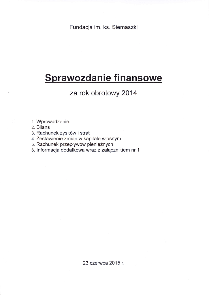 Fundacja im. ks. Siemaszki - sprawozdanie finansowe za 2014