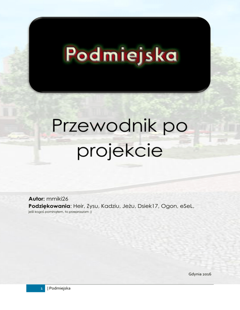 Przewodnik po projekcie Autor: mmiki26 Podziękowania: Heir, Zysu, Kadziu, Jeżu, Dsiek17, Ogon, eSeL, jeśli kogoś pominąłem, to przepraszam ;) Gdynia 2016 1 | Podmiejska Spis treści Spis treści .......................................................................................................................................... 2 Zanim włączysz mapę ........................................................................................................................ 3 Linie i IBIS.......................................................................................................................................... 4 Mapa: ................................................................................................................................................ 6 Lista użytych dodatków: .................................................................................................................... 7 Inne .................................................................................................................................................. 11 Specjalne podziękowania: ................................................................................................................ 12 2 | Podmiejska Zanim włączysz mapę Do omsi nie ma projektów idealnych. Moja mapa również taka nie jest. Podczas jazdy możesz zauważyć jakieś przeoczenia czy celowo zachowane niedociągnięcia, ale kilka kwestii chciałbym wyjaśnić, aby jazda po mapie sprawiała jak największą frajdę. :) 1. Ruch uliczny: Ruch uliczny jest jednym z najbardziej specyficznych z jakim się spotkałeś do tej pory. Na mapie powinien działać tzw. inteligentny ruch drogowy. Tzn. w porach szczytu spotkasz więcej samochodów, a w nocy będzie ich o wiele mniej, ale wymaga to zastosowania specjalnych ustawień. Bez tego najprawdopodobniej skrzyżowania dosyć mocno będą się korkować. Optymalne ustawienia ruchu ulicznego wyglądają tak: Oprócz tego jest możliwe, że w kilku miejscach samochód AI nie włączy kierunkowskazu lub (rzadko) najedzie na inny samochód, ale nigdy nie powinien zajechać Ci drogi ani zniknąć/pojawić się. Dodatkowo miejscami lekko auta nienaturalnie "przestawią się", ale jest to spowodowane moją dosyć nierówną walką z opcją "complete to" . ;) 2. Ustawienia graficzne: Mapa nie jest tak ciężka jak można się spodziewać patrząc na screenshoty, jednakże nie jest też bardzo lekka. Wymaga średniego komputera, a przy dodatkowych ustawieniach pozwoli na przyjemną i płynną rozgrywkę. Podmiejska zawiera dosyć dużą ilość detali, przez co radzę ograniczyć widoczność obiektów, a najbardziej radzę jeździć przy maksymalnie 1 sąsiednim fragmencie mapy. Tak wyglądają moje przykładowe ustawienia, na których osiągam dobrą ilość fpsów na moim dosyć starym już komputerze. 3. Znane mi błędy Testy mapy trwały dosyć krótko, dlatego mogą zdarzyć się jakieś błędy, o których nie wiem, ale są takie, o których wiem. Oprócz już wspomnianych niedogodności z ruchem ulicznym może pojawić się czasem z niewiadomych przyczyn (błąd gry) "autobus widmo", czyli jadący autobus bez kierunku i w malowaniu berlińskim. 4. Największa zbrodnia Największy nacisk nałożyłem na malowanie terenu, dlatego nie niszcz tego i nie usuwaj sobie żadnych tekstur terenu, aby poprawić wydajność. Tekstury są lekkie, więc nic dodatkowo nie zyskasz, a mapa całkowicie straci na uroku. ;) 3 | Podmiejska Linie i IBIS Linie dostępne na mapie oraz ich kody: Linie dzienne: Line: 180 Route: 01 - Borki Zajezdnia MZK (Ziel: 013) Route: 02 - Torów Śródmieście (Ziel: 012) Długość: 9 km | Pojazd: 18m Line: 180 Route: 01 - Żukowo (Ziel: 011) Route: 02 - Torów Śródmieście (Ziel: 012) Długość: 5 km | Pojazd: 12m Line: 201 Route: 01 - Borki Dworzec PKP (Ziel: 10) Route: 02 - Orłowo Centrum (Ziel: 20) Długość: 2 km | Pojazd 10m Line: 205 Route: 01 - Zukowo (Ziel: 011) Route: 02 - Borki Dworzec PKP (Ziel: 10) Długość: 3 km | Pojazd: 10m 4 | Podmiejska Linie nocne: Line: 10 (wpisz 10, a następnie wpisz "N10" z "belki") Route: 01 - Borki Dworzec PKP (Ziel: 10) Route: 02 - Torów Śródmieście (Ziel: 012) Długość: 8 km | Pojazd: 12m 5 | Podmiejska Mapa: To jest schemat, pełna mapa znajduje się tutaj: http://mmiki26.za.pl/mapa.jpg 6 | Podmiejska Lista użytych dodatków: 1. Sceneryobjects\ADDON_gcW\ autor: gcWorldMods pozwolenie: publiczne/brak zakazu 2. Sceneryobjects\ADDON_O.L.K\ autor: O.L.K pozwolenie: publiczne/brak zakazu 3. Sceneryobjects\ADDON_PLSigns\ autor: nieznany? pozwolenie: publiczne/brak zakazu 4. Sceneryobjects\ADDON_PolskieObiekty \ autor: Kruchu pozwolenie: publiczne/brak zakazu 5. Sceneryobjects\Agriculture \ autor: nieznany? pozwolenie: publiczne/brak zakazu 6. Sceneryobjects\Aragok \ autor: Aragok pozwolenie: publiczne/brak zakazu 7. Sceneryobjects\backgroundsounds \ autor: Lockheart pozwolenie: publiczne/brak zakazu 8. Sceneryobjects\bilboardy wooder\ autor: wooder pozwolenie: publiczne/brak zakazu 9. Sceneryobjects\Budynki_Ogon \ autor: Ogon pozwolenie: publiczne/brak zakazu 10. Sceneryobjects\Buildings_DDR_RUE\ autor: MRSoftware pozwolenie: obiekt podstawowy (nie jest umieszczony w paczce) 11. Sceneryobjects\Dodatkowe busze Heir\ autor: Heir pozwolenie: publiczne/brak zakazu 7 | Podmiejska 12. Sceneryobjects\kostki sterujace ruchem\ autor: Tomson91 pozwolenie: publiczne/brak zakazu 13. Sceneryobjects\Heir \ autor: Heir pozwolenie: publiczne/brak zakazu 14. Sceneryobjects\Kamaz_Objects\ autor: Kamaz pozwolenie: publiczne/brak zakazu 15. Sceneryobjects\kanal pl\ autor: Kosickov pozwolenie: publiczne/brak zakazu 16. Sceneryobjects\Kostelec_T18\ autor: Tomashek_18 pozwolenie: publiczne/brak zakazu 17. Sceneryobjects\NightHauler\ autor: NightHauler pozwolenie: publiczne/brak zakazu 18. Sceneryobjects\obiekty by Przemek!\ autor: Przemek! pozwolenie: publiczne/brak zakazu 19. Sceneryobjects\Plot1\ autor: Heir