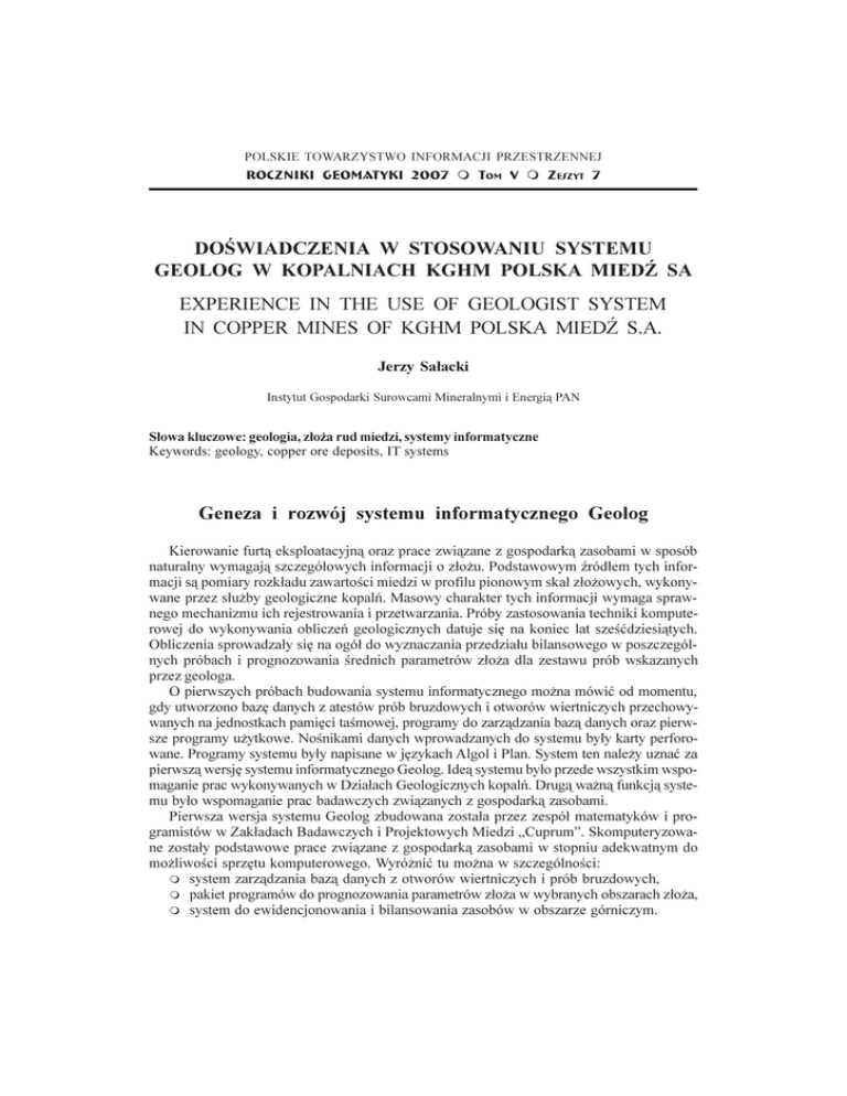 DOŚWIADCZENIA W STOSOWANIU SYSTEMU GEOLOG W