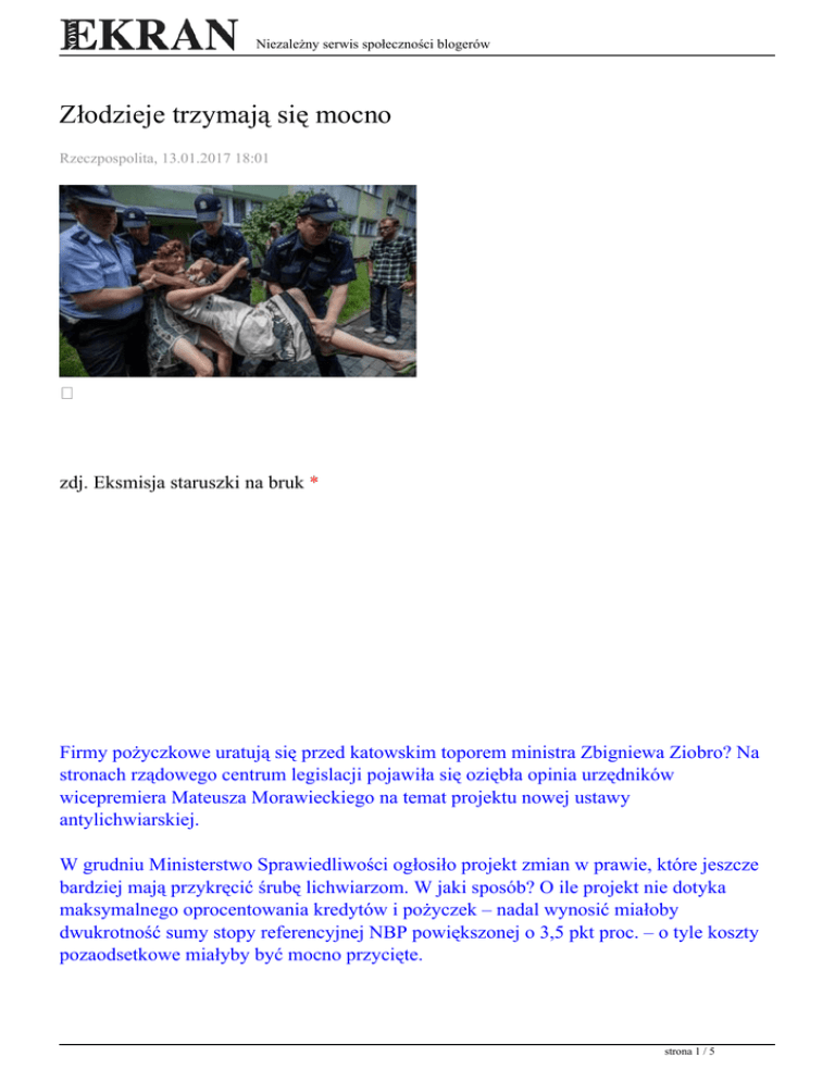 Niezależny serwis społeczności blogerów Złodzieje trzymają się mocno Rzeczpospolita, 13.01.2017 18:01 zdj. Eksmisja staruszki na bruk * Firmy pożyczkowe uratują się przed katowskim toporem ministra Zbigniewa Ziobro? Na stronach rządowego centrum legislacji pojawiła się oziębła opinia urzędników wicepremiera Mateusza Morawieckiego na temat projektu nowej ustawy antylichwiarskiej. W grudniu Ministerstwo Sprawiedliwości ogłosiło projekt zmian w prawie, które jeszcze bardziej mają przykręcić śrubę lichwiarzom. W jaki sposób? O ile projekt nie dotyka maksymalnego oprocentowania kredytów i pożyczek – nadal wynosić miałoby dwukrotność sumy stopy referencyjnej NBP powiększonej o 3,5 pkt proc. – o tyle koszty pozaodsetkowe miałyby być mocno przycięte. strona 1 / 5 Niezależny serwis społeczności blogerów Można byłoby naliczyć maksymalnie 10 proc. prowizji od udzielonej pożyczki oraz nie więcej niż 10 proc. pozostałych kosztów w skali roku. Dziś progi są znacznie łagodniejsze: prowizja może wynieść nawet 25 proc., zaś koszty dodatkowe – nawet 30 proc. w skali roku. Projekt nowego prawa antylichwiarskiego ustala też nową zasadę, że wszystkie koszty pozaodsetkowe mogą stanowić maksymalnie 75 proc. wartości kredytu (dziś jest to 100 proc.). – za: http://wyborcza.biz/ Widać więc, że walka z lichwą w wykonaniu min. Ziobro jest raczej pijarowska, żeby nie powiedzieć kosmetyczna, niż rzeczywista. Być może min. Ziobro jest świadom przypadku prof. T.Lubińskiej – min. finansów w rządzie PiS z 2005r., która straciła stanowisko po 65 dniach urzędowania, ponieważ ośmieliła się stwierdzić, że wielkie sieci handlowe (własność głównie żydowska) w Polsce nie przynoszą dochodu budżetowi państwa. Co oznacza, że realizują jako pośrednicy handlowi zalegalizowaną prawem IIIŻydo-RP kradzież na Polakach. Tym razem może nie będzie tak źle, bo sprawą lichwy i lichwiarzy zajął się bardzo troskliwie minister M.Morawiecki. strona 2 / 5 Niezależny serwis społeczności blogerów Zdjęcie: wrzesień 2016 Forum Ekonomiczne w Krynicy ** Z zamieszczonych na stronach Rządowego Centrum Legislacji ekspertyz wynika, że Ministerstwo Finansów i Ministerstwo Rozwoju – oba zarządzane przez wicepremiera M.Morawieckiego – chłodno oceniają projekt, domagając się dowodów, że przepisy nie spowodują negatywnych skutków ubocznych. „Potrzeba rozwiązań proponowanych w projekcie Ministra Sprawiedliwości nie została w sposób wystarczający uzasadniona – piszą urzędnicy Ministerstwa Finansów. – Brak informacji o potencjalnym wpływie (…) na aktywność gospodarczą, akcję kredytową, produkt krajowy, przychody budżetu państwa.” za: http://wyborcza.biz/ Ostatnie zdanie dowodzi, że żydowska ekonomia, czy też żydowski kapitalizm, z ekonomią nie mają wiele wspólnego. Związek lichwiarskiej działalności z aktywnością gospodarczą, z produktem krajowym (czyli z wytwarzaniem dóbr i usług), z zasilaniem budżetu państwa podatkami jest taki, że każda z wymienionych dziedzin jest przez lichwę osłabiana i niszczona. Lichwa jest działalnością wyłącznie pasożytniczą, sprowadzającą się do łupienia klientów nieświadomych złodziejskiego procederu pożyczkodawców. A jeżeli już pieniądze klienta mają trafić do budżetu państwa, to przecież nie muszą trafiać przez pośrednika-złodzieja tylko w wyniku działalności gospodarczej lub konsumenckiej pożyczkobiorcy, a nie pożyczkodawcy. Z kolei w opinii Ministerstwa Rozwoju czytamy, że w projekcie brakuje oceny, „czy na skutek marginalizacji segmentu mikropożyczek osoby potrzebujące krótkoterminowej pożyczki nie zostaną w praktyce pozbawione dostępu do finansowania i czy nie zwrócą się strona 3 / 5 Niezależny serwis społeczności blogerów do usługodawców działających w szarej strefie.” – za: http://wyborcza.biz/ Swoją troskę o firmy pożyczkowe przedstawili także eksperci organizacji pracodawców Lewiatan – a może warto byłoby przyjrzeć się bliżej tej organizacji, kogo na prawdę skupia i kim są owi eksperci. A co do troski o lichwiarzy wyrażonej w opinii Ministerstwa Rozwoju, to z pewnością można stwierdzić jedno, że gdyby żydowski reżim IIIRP oraz jego żydowskie organizacje pracodawców zadbały, żeby wynagrodzenia pracowników były w podobnej relacji do PKB jak w zachodnich państwach UE, to zniknąłby „segment mikropożyczek” i biedni Polacy nie stawaliby się jeszcze biedniejsi na rzecz złodziei ochranianych przez prawo żydowskiego reżimu IIIRP. Smutkiem napawa tylko fakt, że jeszcze wielu z nas ulega złudzeniu, iż władzy warto wskazać dobre rozwiązania gospodarcze, że warto z nią o tym rozmawiać. Tylko polityczna siła, która powstanie w wyniku świadomego zorganizowania narodu zdolna będzie dokonać zmian – zlikwidować żydowski kapiatalizm i żydowski reżim. Z wrogiem się nie dyskutuje, wroga trzeba wyeliminować politycznie lub fizycznie. Dariusz Kosiur ________________________ * http://www.expressilustrowany.pl/artykul/831681,wyrzucili-staruszke-na-bruk-dramatycz ny-przebieg-eksmisji-przy-ul-matejki-zdjecia-film,id,t.html ** zdjęcie: wrzesień 2016 Forum Ekonomiczne w Krynicy Podczas Forum Ekonomicznego w Krynicy — minister zadeklarował wsparcie dla sprowadzania do Polski pracowników z Ukrainy. Morawiecki podkreślił, — że wskazana wyżej kwestia zajmie istotne miejsce w Strategii Odpowiedzialnego Rozwoju. strona 4 / 5 Niezależny serwis społeczności blogerów M.Morawiecki: – Będę starał się, by nastąpiło przyjazne zaproszenie kilkuset tysięcy ukraińskich pracowników do Polski. Po stronie MR, MSW, Min. Rodziny — wypracowujemy stanowisko by było zgodne z wymogami dyrektywy unijnej, by wesprzeć proces adaptacji [Ukraińców]. – za: http://wmeritum.pl/ Zmiany liczby postępowań eksmisyjnych w Polsce oraz wykonanych eksmisji 