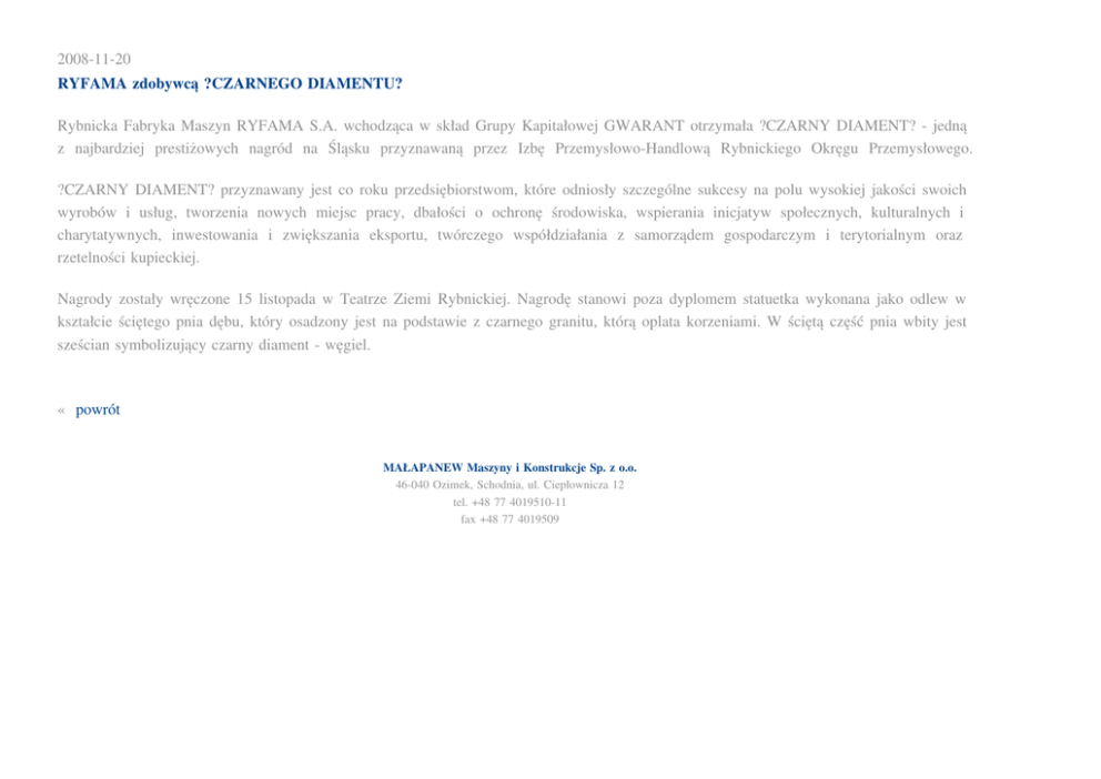 2008-11-20 RYFAMA zdobywcą ?CZARNEGO DIAMENTU