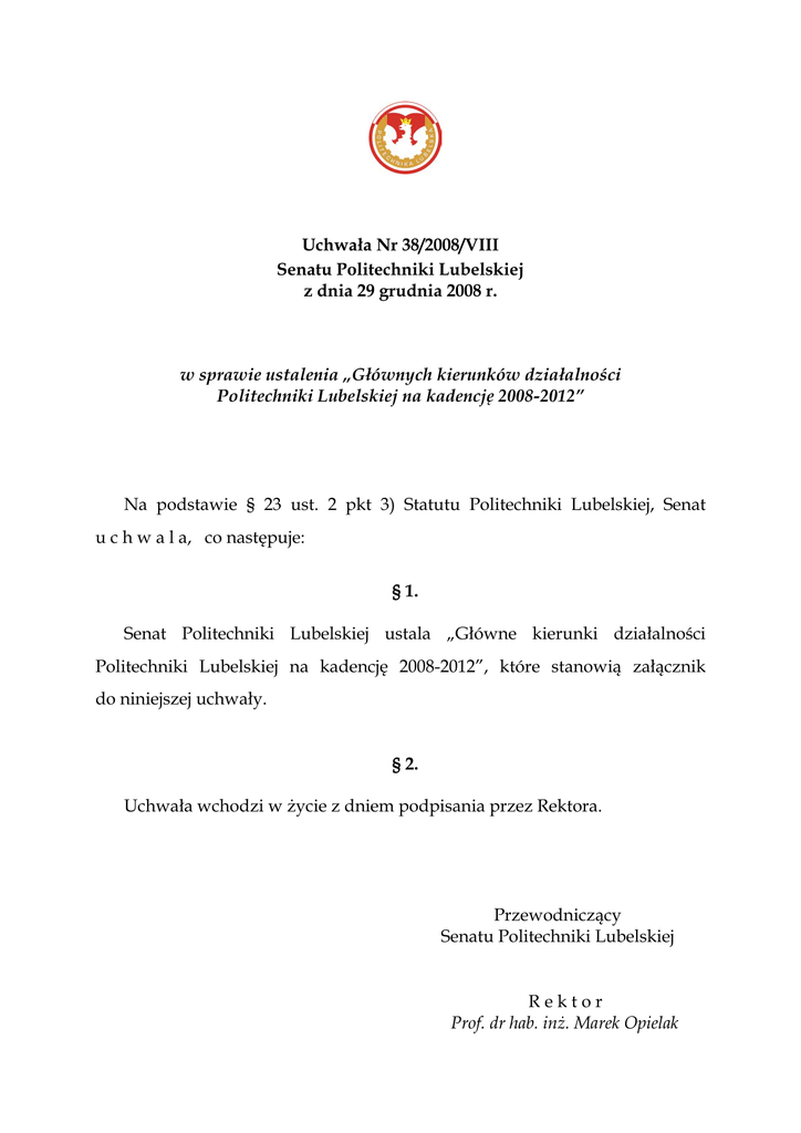 Uchwała Nr 38/2008/VIII - Politechnika Lubelska