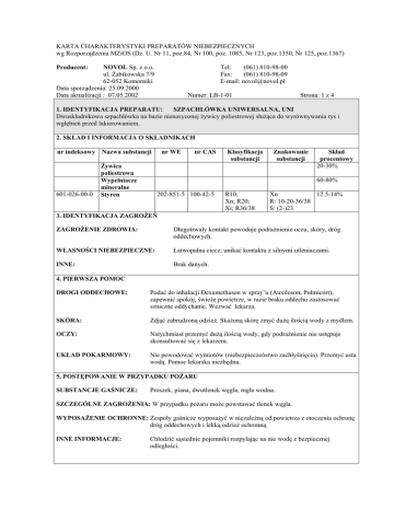KARTA CHARAKTERYSTYKI PREPARATÓW NIEBEZPIECZNYCH