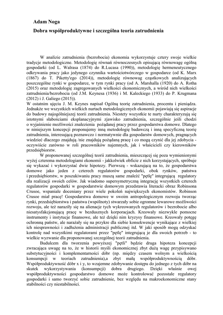 Adam Noga Dobra współproduktywne i szczególna teoria zatrudnienia