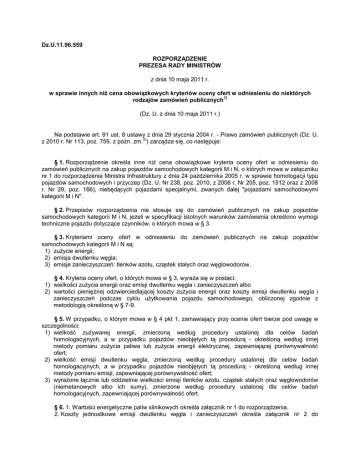 Dz.U.11.96.559 ROZPORZĄDZENIE PREZESA RADY MINISTRÓW