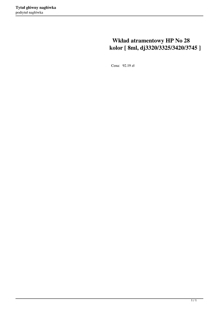 Tytuł główny nagłówka podtytuł nagłówka Wkład atramentowy HP No 28 kolor [ 8ml, dj3320/3325/3420/3745 ] Cena: 92.19 zł 1/1 Powered by TCPDF (www.tcpdf.org)