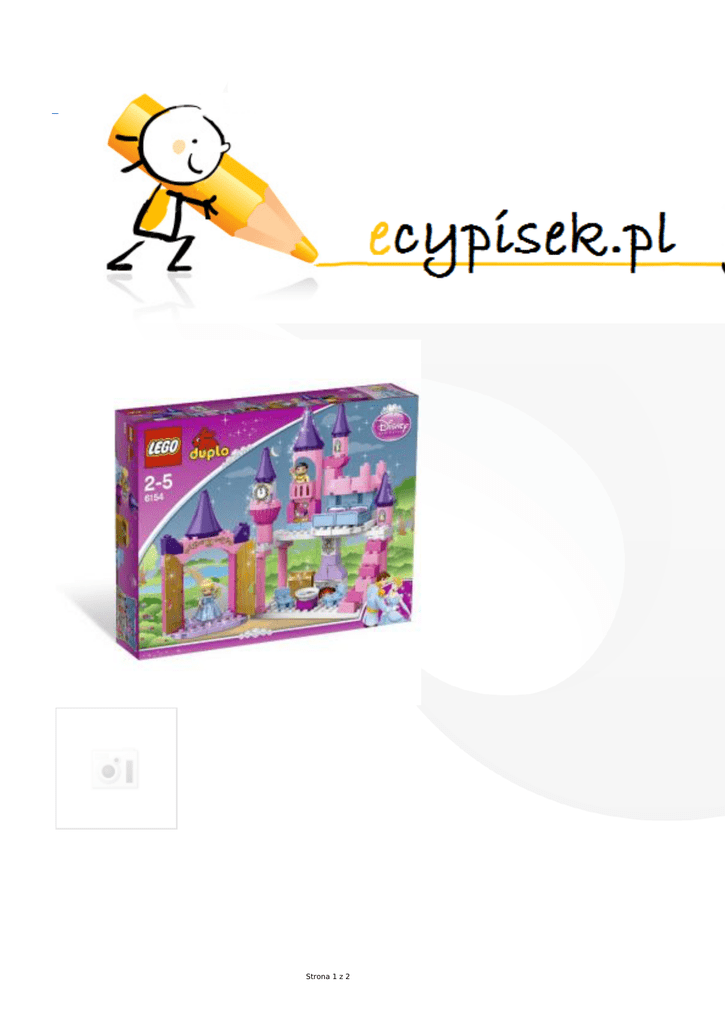 Strona 1 z 2 6154 Lego DUPLO, Pałac Kopciuszka, Disney princess Preferowany wiek: 2 - 5 lat wymiary opakowania ok.: 49 x 38 x 10 cm Baw się z udziałem swoich ulubionych postaci ze świata Disneya. Strona 2 z 2