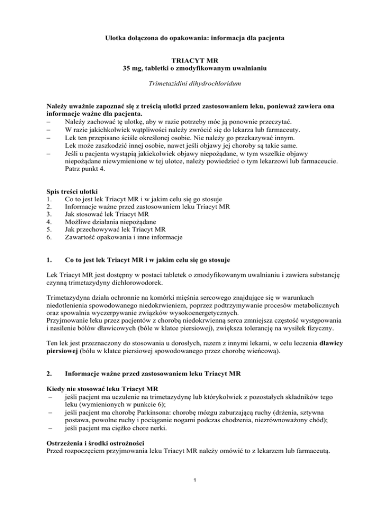 Informacje ważne przed zastosowaniem leku Triacyt MR