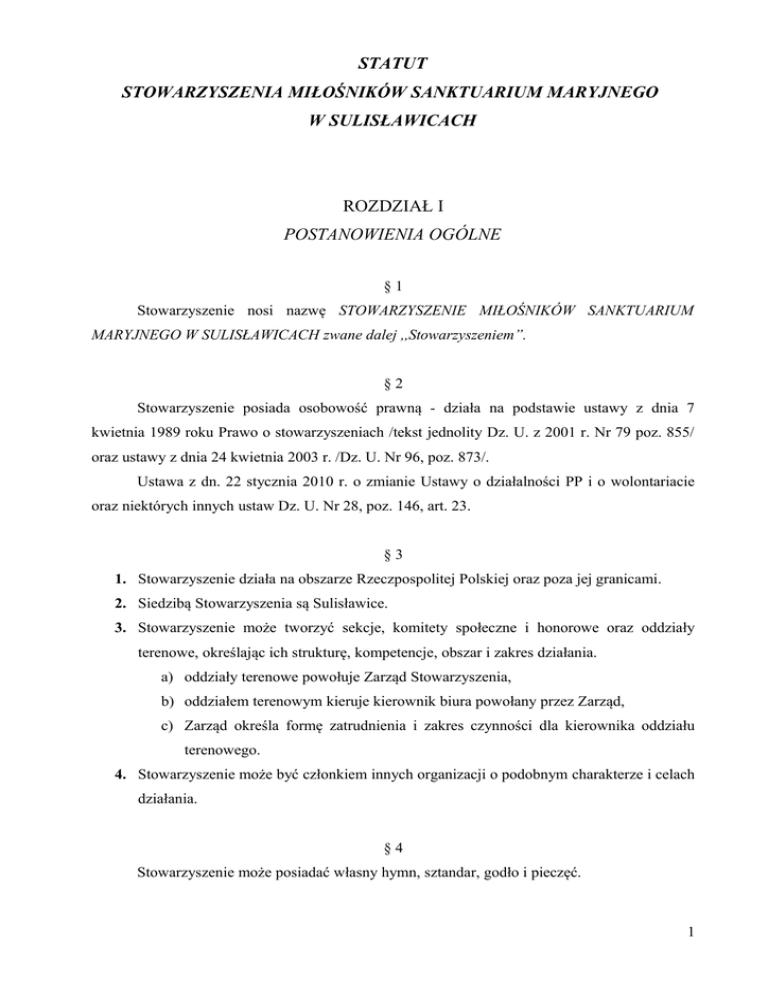 Statut - Stowarzyszenie Miłośników Sanktuarium Maryjnego w