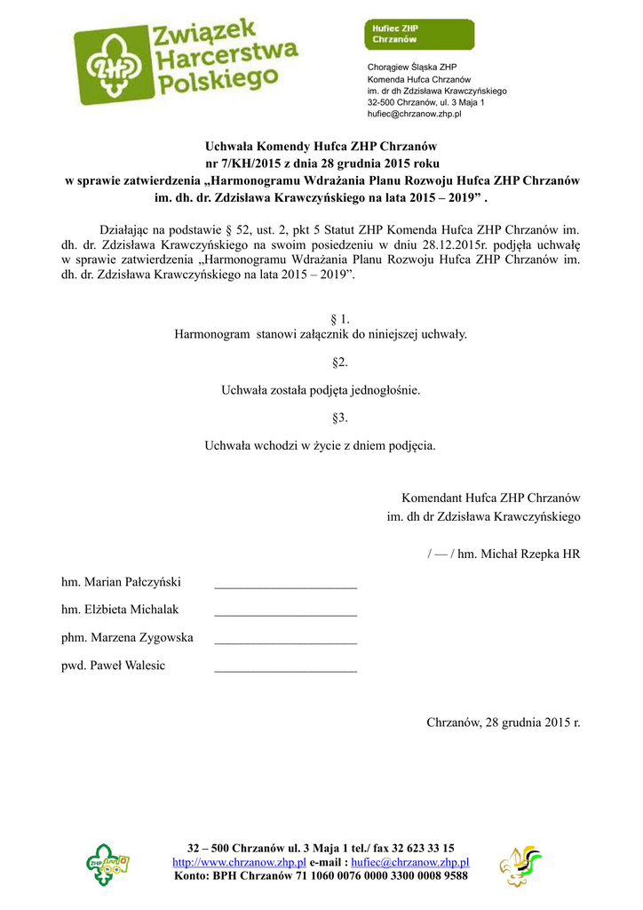 Uchwała Komendy Hufca ZHP Chrzanów nr 7