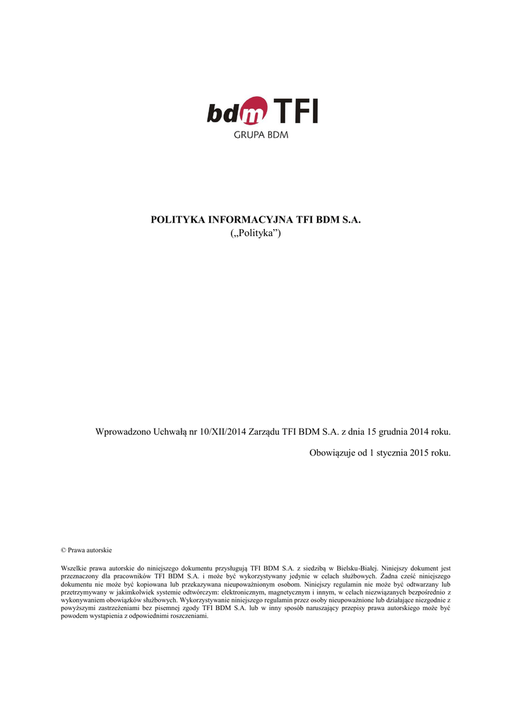 POLITYKA INFORMACYJNA TFI BDM S.A. („Polityka”)