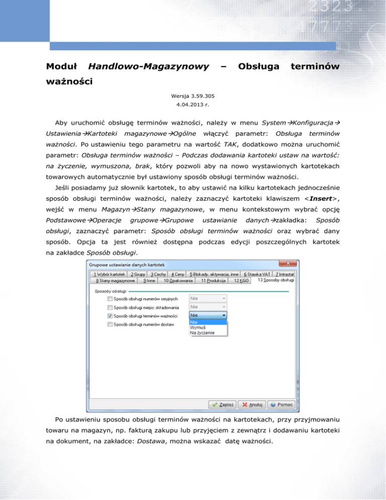 Moduł Handlowo-Magazynowy – Obsługa terminów ważności