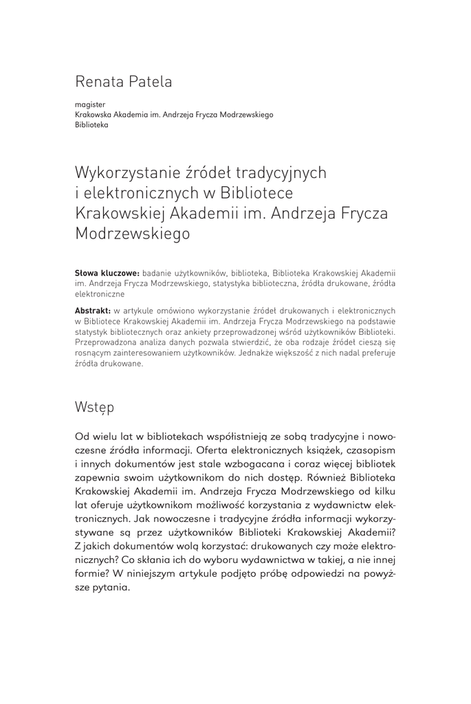 Wykorzystanie źródeł tradycyjnych i elektronicznych w Bibliotece