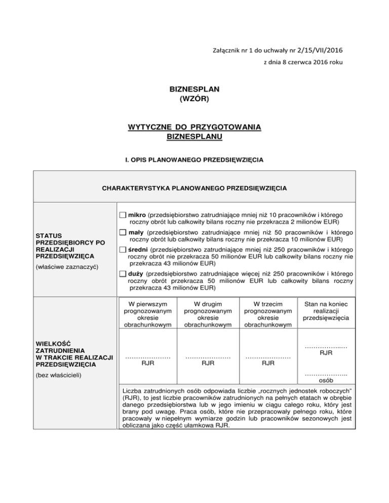 biznesplan (wzór) wytyczne do przygotowania biznesplanu