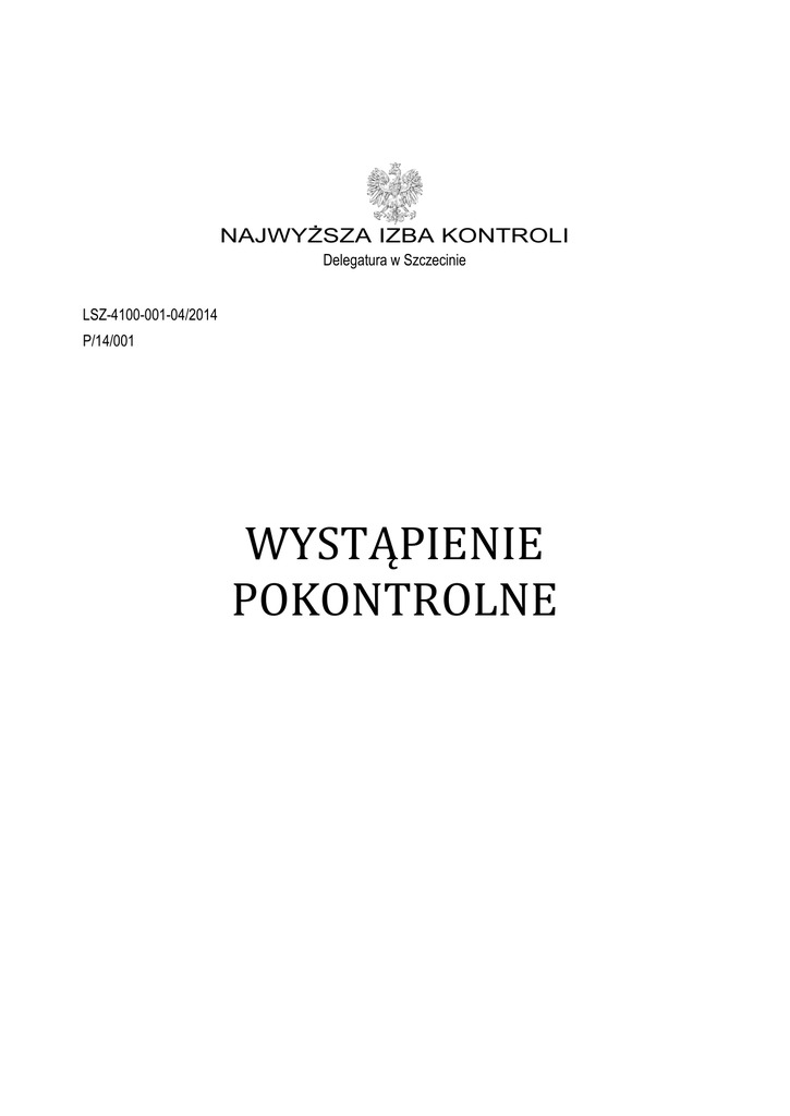NAJWYŻSZA IZBA KONTROLI Delegatura w Szczecinie LSZ-4100-001-04/2014 P/14/001 WYSTĄPIENIE POKONTROLNE I. Dane identyfikacyjne kontroli Numer i tytuł kontroli Jednostka przeprowadzająca kontrolę Kontrolerzy P/14 /001 - Wykonanie budżetu państwa w 2013 r. Najwyższa Izba Kontroli Delegatura w Szczecinie 1. Tadeusz Jaworski, główny specjalista kontroli państwowej, upoważnienie do kontroli nr 87915 z dnia 08.01.2014 r. (dowód: akta kontroli str. 1-2) 2. Artur Matejko, starszy inspektor kontroli państwowej, upoważnienie do kontroli nr 87930 z dnia 20.01.2014 r. (dowód: akta kontroli str. 3-4) Jednostka kontrolowana Kierownik jednostki kontrolowanej Sąd Apelacyjny w Szczecinie1. Roman Bilski, dyrektor. (dowód: akta kontroli str. 5) II. Ocena kontrolowanej działalności Ocena ogólna Uzasadnienie oceny Najwyższa Izba Kontroli ocenia pozytywnie2 wykonanie w 2013 r. budżetu państwa w części nr 15/12 - Sąd Apelacyjny w Szczecinie. Pozytywną ocenę ogólną uzasadnia w szczególności: - zaplanowanie oraz realizacja wydatków budżetowych z zachowaniem zasad gospodarowania środkami publicznymi określonych w ustawie z dnia 27 sierpnia 2009 r. o finansach publicznych3. Wydatki Sądu w wysokości 21.296,6 tys. zł4 zostały zrealizowane w sposób celowy, gospodarny i zgodnie z przeznaczeniem. Ocena została sformułowana po zbadaniu 22,7% wydatków Sądu (4.832,1 tys. zł) oraz na podstawie badania analitycznego ksiąg rachunkowych, - ocena pozytywna wiarygodności ksiąg rachunkowych w odniesieniu do rocznych sprawozdań budżetowych i w odniesieniu do bieżących sprawozdań w zakresie operacji finansowych, zgodności ksiąg rachunkowych z zasadami rachunkowości i skuteczności funkcjonowania systemu rachunkowości, a także mechanizmów kontroli zarządczej, dotyczących operacji finansowych i gospodarczych, - ocena pozytywna rocznych sprawozdań budżetowych i kwartalnych sprawozdań w zakresie operacji finansowych oraz zgodność kwot wydatków ujętych w sprawozdaniu z wykonania wydatków budżetu państwa w układzie zadaniowym z ewidencją księgową. Stwierdzone w trakcie kontroli nieprawidłowości polegały na: - zmianie terminu realizacji umowy zawartej po przeprowadzeniu postępowania o udzielenie zamówienia publicznego w trybie zapytanie o cenę (postępowanie nr ZP/ZC/7/2013), co było sprzeczne z zapisami ujętymi w SIWZ, ofercie i umowie, a tym samym niezgodne z przepisami art. 144 ust. 1 ustawy z dnia 29 stycznia 2004 r. Prawo zamówień publicznych5; Zwany dalej Sądem Apelacyjnym lub część 15/12 przy omawianiu zadań z obszaru apelacji (dysponent II stopnia). W kontroli wykonania w 2013 r. budżetu państwa Najwyższa Izba Kontroli stosuje 3-stopniową skalę ocen: pozytywna, pozytywna mimo stwierdzonych nieprawidłowości, negatywna. 3 Dz.U. z 2013 r. poz. 885 ze zm. – zwanej dalej ufp. 4 W ramach środków krajowych i budżetu środków europejskich. 5 Dz.U z 2013 r., poz. 907 j.t. ze zm., zwana dalej ustawą pzp. 1 2 1 - niewezwaniu wykonawcy, w postępowaniu o udzielenia zamówienia przeprowadzonego w trybie zapytania o cenę (postępowanie nr ZP/1/ZC/2013), na podstawie art. 26 ust. 3 ustawy pzp, do przedłożenia aktualnego zaświadczenia Urzędu Skarbowego o niezaleganiu z opłacaniem podatków6. W konsekwencji nie odrzucono oferty tego wykonawcy na podstawie art. 89 ust. 1 pkt 2 ustawy pzp oraz zakwalifikowano ofertę ww. firmy do dalszego postępowania. Stwierdzone nieprawidłowości nie miały wpływu na przebieg i rozstrzygnięcie ww. postępowań. III. Wyniki kontroli 1. Dochody budżetowe Opis stanu faktycznego Zgodnie z założeniami przyjętymi do kontroli wykonania w 2013 r. budżetu państwa, kontrola dochodów budżetowych w części 15/12 – Sąd Apelacyjny w Szczecinie została ograniczona do przeprowadzenia analizy porównawczej danych ujętych w rocznym sprawozdaniu budżetowym Rb-27 z wykonania planu dochodów budżetowych. Zrealizowane dochody w 2013 r. wyniosły 113.838,9 tys. zł, tj. 93,8% kwoty planowanej w części 15/12-Sąd Apelacyjny (121.307 tys. zł) i były wyższe od wykonania 2012 r. o 8.020,4 tys. zł (o 7,1%). Największy udział w dochodach wynoszący 74,2% (84.516,4 tys. zł) stanowiły wpływy z tytułu opłat i kosztów uiszczanych na rzecz Skarbu Państwa w ramach postępowania sądowego (w rozdziale 75502, § 0690). Na koniec 2013 r. wystąpiły należności pozostałe do zapłaty w kwocie 55.118,5 tys. zł, w tym zaległości stanowiły 42.781,9 tys. zł. W porównaniu do roku ubiegłego należności ogółem były niższe o 5.519,9 tys. zł, a zaległości wyższe o 39,6 tys. zł (o 0,1%). (dowód: akta kontroli, str.: 6, 7) Zrealizowane dochody przez Sąd Apelacyjny (Sąd) – jako dysponenta III stopnia – na kwotę 2.391,2 tys. zł, stanowiącą 114% planu (2.098 tys. zł) były wyższe od wykonania 2012 r. o 305 tys. zł (o 17%). Największy udział w dochodach - 51,7% (1.236 tys. zł) stanowiły dochody uzyskane z tytułu spłat oprocentowanych pożyczek udzielonych sędziom na zaspokojenie ich potrzeb mieszkaniowych oraz wynoszący 33,8% (807,7 tys. zł) - z tytułu opłat i kosztów sądowych w sprawach cywilnych i karnych (w rozdziale 75502, odpowiednio w § 0700 i § 0690). (dowód: akta kontroli, str.: 8) Kierownik Samodzielnej Sekcji ds. Planowania i Analiz Sądu Dagmara Kosowska-Drąg wyjaśniła, że głównym powodem znacznego wzrostu w 2013 r., w porównaniu do 2012 r., dochodów w rozdziale 75502, § 0690 były wyższe wpływy z tytułu wpisów do spraw sądowych i mniejsze zwroty środków finansowych stronom postępowań. (dowód: akta kontroli, str.: 10-13) Na koniec 2013 r. w Sądzie wystąpiły należności pozostałe do zapłaty w kwocie 24,7 tys. zł, w tym zaległości stanowiły 0,3 tys. zł. W porównaniu do 2012 r. należności ogółem i zaległości były niższe odpowiednio o 9,3 tys. zł (o 27,4%) i 33,7 tys. zł (o 99,1%). (dowód: akta kontroli, str.: 9) Ustalone niep