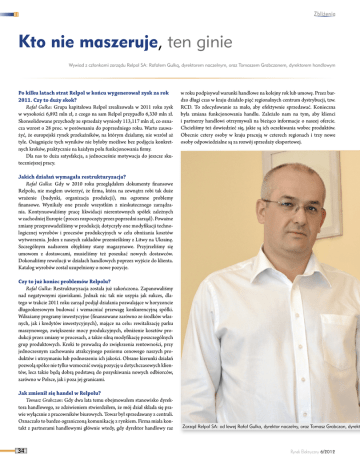 Zbliżenia Kto nie maszeruje, ten ginie Wywiad z członkami zarządu Relpol SA: Rafałem Gulką, dyrektorem naczelnym, oraz Tomaszem Grabczanem, dyrektorem handlowym Po kilku latach strat Relpol w końcu wygenerował zysk za rok 2011. Czy to duży skok? Rafał Gulka: Grupa kapitałowa Relpol zrealizowała w 2011 roku zysk w wysokości 6,892 mln zł, z czego na sam Relpol przypadło 6,330 mln zł. Skonsolidowane przychody ze sprzedaży wyniosły 113,117 mln zł, co oznacza wzrost o 28 proc. w porównaniu do poprzedniego roku. Warto zauważyć, że europejski rynek przekaźników, na którym działamy, nie wzrósł aż tyle. Osiągnięcie tych wyników nie byłoby możliwe bez podjęcia konkretnych kroków, praktycznie na każdym polu funkcjonowania firmy. Dla nas to duża satysfakcja, a jednocześnie motywacja do jeszcze skuteczniejszej pracy. w roku podpisywał warunki handlowe na kolejny rok lub umowę. Przez bardzo długi czas w kraju działało pięć regionalnych centrum dystrybucji, tzw. RCD. To zdecydowanie za mało, aby efektywnie sprzedawać. Konieczna była zmiana funkcjonowania handlu. Zależało nam na tym, aby klienci i partnerzy handlowi otrzymywali na bieżąco informacje o naszej ofercie. Chcieliśmy też dowiedzieć się, jakie są ich oczekiwania wobec produktów. Obecnie cztery osoby w kraju pracują w czterech regionach i trzy nowe osoby odpowiedzialne są za rozwój sprzedaży eksportowej. Jakich działań wymagała restrukturyzacja? Rafał Gulka: Gdy w 2010 roku przeglądałem dokumenty finansowe Relpolu, nie mogłem uwierzyć, że firma, która na zewnątrz robi tak duże wrażenie (budynki, organizacja produkcji), ma ogromne problemy finansowe. Wynikały one przede wszystkim z nieskutecznego zarządzania. Kontynuowaliśmy pracę likwidacji nierentownych spółek zależnych w zachodniej Europie (proces rozpoczęty przez poprzedni zarząd). Poważne zmiany przeprowadziliśmy w produkcji; dotyczyły one modyfikacji technologicznej wyrobów i procesów produkcyjnych w celu obniżania kosztów wytworzenia. Jeden z naszych zakładów przenieśliśmy z Litwy na Ukrainę. Szczególnym nadzorem objęliśmy stany magazynowe. Przyjrzeliśmy się umowom z dostawcami, musieliśmy też poszukać nowych dostawców. Dokonaliśmy rewolucji w działach handlowych poprzez wyjście do klienta. Katalog wyrobów został uzupełniony o nowe pozycje. Czy to już koniec problemów Relpolu? Rafał Gulka: Restrukturyzacja została już zakończona. Zapanowaliśmy nad negatywnymi zjawiskami. Jednak nic tak nie usypia jak sukces, dlatego w trakcie 2011 roku zarząd podjął działania pozwalające w horyzoncie długookresowym budować i wzmacniać przewagę konkurencyjną spółki. Wdrażamy programy inwestycyjne (finansowane zarówno ze środków własnych, jak i kredytów inwestycyjnych), mające na celu: rewitalizację parku maszynowego, zwiększenie mocy produkcyjnych, obniżenie kosztów produkcji przez zmiany w procesach, a także silną modyfikację poszczególnych grup produktowych. Kroki te prowadzą do zwiększenia rentowności, przy jednoczesnym zachowaniu atrakcyjnego poziomu cenowego naszych produktów i utrzymaniu lub podnoszeniu ich jakości. Obrane kierunki działań pozwolą spółce nie tylko wzmocnić swoją pozycję u dotychczasowych klientów, lecz także będą dobrą podstawą do pozyskiwania nowych odbiorców, zarówno w Polsce, jak i poza jej granicami. Jak zmienił się handel w Relpolu? Tomasz Grabczan: Gdy dwa lata temu obejmowałem stanowisko dyrektora handlowego, ze zdziwieniem stwierdziłem, że mój dział składa się prawie wyłącznie z pracowników biurowych. Towar był sprzedawany z centrali. Oznaczało to bardzo ograniczoną komunikację z rynkiem. Firma miała kontakt z partnerami handlowymi głównie wtedy, gdy dyrektor handlowy raz 34 Zarząd Relpol SA: od lewej Rafał Gulka, dyrektor naczelny, oraz Tomasz Grabczan, dyrekt Rynek Elektryczny 6/2012 Zbliżenia Dziś mogę z zadowoleniem powiedzieć, że w kraju handlujemy prawie ze wszystkimi. Mamy 2 tys. aktywnych klientów. 80 proc. naszego obrotu krajowego stanowią hurtownie elektrotechniczne i wyspecjalizowani dystrybutorzy. W handlu liczy się dobry produkt i właściwy marketing. Jak zarząd traktuje te ważne kwestie? Rafał Gulka: Produkty Relpolu oceniane są wysoko. Zawsze uznawane były za wzór jakości. Wytrzymałość i funkcjonalność naszych przekaźników stawia nas w czołówce dostawców europejskich, natomiast w kraju jesteśmy absolutnym liderem. W naszych zakładach produkujemy również wyroby dla innych marek o światowym zasięgu (35 proc. sprzedajemy na kraj, 65 proc. stanowi eksport). W historii Relpolu zdarzały się produkty nietrafione – rynek ich nie zaakceptował, a koszt wdrożenia był bardzo wysoki. Obecnie nasi konstruktorzy otworzyli się na świat, zmieniają produkty w taki sposób, aby spełniać oczekiwania klientów. Dyrektor produkcji jest jednocześnie osobą odpowiedzialną za dział badań i rozwoju. To nie jest często spotykane, ale Relpol to niewielka spółka i możemy połączyć w niej obie te funkcje. Nasi inżynierowie jeżdżą na różne spotkania, aby dowiedzieć się, jaki kierunek rozwoju powinna mieć oferta. Okazało się, że ci sami ludzie mogą zmienić swoje nastawienie i pomyśleć w inny sposób o produkcie. Tomasz Grabczan: Siła firmy tkwi w relacji z klientami. Kontakt nie polega na ustalaniu warunków handlowych raz na jakiś czas. Konieczne są regularne spotkania w różnej formie. Jeśli ludzie chcą ze sobą zrobić biznes, to muszą rozmawiać. Oprócz tego, że pracownicy działu handlowego bezpośrednio odwiedzają punkty sprzedaży, coraz chętniej korzystają także z telekonferencji. Dotyczy to głównie eksportu, ale coraz częściej stosujemy tę formę kontaktu także z partnerami krajowymi. Jesteśmy w stanie szybko reagować na potrzeby klienta. Praca z klientem daje nam wymierne rezultaty. Partnerzy handlowi dostrze