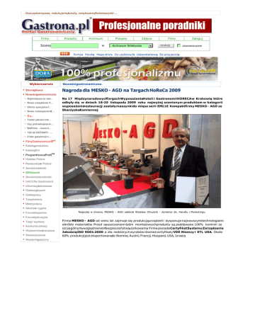 Oszczędzamyczas, redukujemykoszty, zwiększamyPaństwazyski ... Firmy Produkty Archiwum Szukaj w Przepisy Zdjęcia Filmy Archiwum felietonów Zaloguj zaawansowane Pomoc, Poczta, Mapa stron, Do ulubionych, Ustawstartową, Do przyjaciela, Wybierzserwis Stronagłówna Nowościgastronomiczne Nagroda dla MESKO - AGD na Targach HoReCa 2009 Nowościgastronomiczne Najmniejsza na świ... Nowe urządzenie fi... Oferta specjalna f... Nowe rozwiązanie M... Na 17 Międzynarodowych TargachWyposażeniaHoteli i GastronomiiHORECAw Krakowie, które odbyły się w dniach 18-20 listopada 2009 roku najwyżej ocenionym produktem w kategorii wyposażeniarestauracji, zostałymaszynkido mięsa serii EM11E Kompaktfirmy MESKO - AGD ze SkarżyskaKamiennej. Su... Tester jakości ole... Czy potrzebujesz w... BAR line - nowa li... 129 lat KOTANYI - ... 2 lata gwarancji n... new! FilmyGastronomiczne Katalogproduktów Katalogfirm ProgramHorecaProfitTM Hotelew Polsce Restauracjew Polsce Serwishotelarski 5555 porad Serwisrestauratorski HACCPw Gastronomii Informacjebiznesowe Giełdaogłoszeń Giełdapracy Twojakariera Mistrz poleca Alkoholei cygara Forumekspertów Nagrodę w imieniu MESKO - AGD odebrał Wiesław Chruścik - dyrektor ds. Handlu i Marketingu Forumdyskusyjne Targii wystawy Konkursyi pokazy Wydawnictwabranżowe Stowarzyszenia Akademiagastrony Firma MESKO - AGD od wielu lat zajmuje się produkcjąurządzeń i dysponuje najnowszymitechnologiami obróbki materiałów . Przed opuszczeniem taśm montażowychprodukty są poddawane 100% kontroli ze szczególnymuwzględnieniembezpieczeństwaużytkowania . Firma posiadaCertyfikatSystemuZarządzania JakościąISO 9001:2000 a dla niektórychwyrobówrównież certyfikatyVDE Niemcy i ETL USA. Około 60% produkcjijest eksportowanado Niemiec, Austrii, Francji, Hiszpanii, USA, Izraela. Zestaw do obróbki mięsa EM 11 E KOMPAKT Spółka MESKO- AGD jest producentemwyrobóww czterechgrupachasortymentowych : profesjonalneurządzenia gastronomiczne : wieloczynnościoweroboty kuchenne, maszynki do mięsa, rozdrabniarkido warzyw, opiekaczedo pizzy. sprzęt gospodarstwadomowego: elektrycznemaszynki do mięsa, wyciskarkido owoców, przystawki do maszynekrozszerzająceich funkcjonalność , sokowirówki , napędyrożna. kosiarkido trawy: elektrycznei spalinowe. oprawyoświetleniowe . Sprawdzonena europejskii polskim rynku modeleKU2 - 4E/K, A2 - 1 oraz AL 2 - 1wyposażonew szeroki zestaw przystawek: zestawy mielące, mieszarkido ciast, szatkownicedo krojena i tarcia jarzyn, steaker do formowania kotletów. Szczególnie godną uwagi jest profejsonalna rozdrabniarka do warzyw typu G11(wydajnośćdo 400kg/h), która tnie warzywaw plastry, paseczki, wiórki, w kostkę i przecierana miazgę. MESKO - AGD to również znany i ceniony producentdrobnego sprzętu AGD , ma w swojej ofercie takie urządzeniajak: maszynki do mielenia mięsa przeznaczone są do rozdrabniania surowców spożywczych przy przygotowaniupotraw w gospodarstwiedomowymoraz małej gastronomii . Szczególnieprzydatnedo mielenia mięsa, sera, jarzyn i maku. Przy zastosowaniudodatkowegowyposażeniamaszynka może służyćjako wyciskarkado soków, rozdrabniarkawarzywa także może napełniaćkiełbasę. opiekacze do pizzy, które przeznaczone są do pieczenia pizzy, bagietek, zapiekanek, kiełbasek, grillowaniamięsa itp. Przy czym są łatwe do czyszczeniaze względuna wysuwanyruszt i szufladędo zbierania oktruchów. Posiadają funkcje (ST) utrzymywania stałej temperatury 100 stopni C po zakończonymprocesiepieczenia. kutry, to urządzeniado rozdrabnianiamięs, tłuszczywraz z dodatkami. Wytwarzasię w nim farsze do wędlin, wędliny rozdrobnione, pasztety, sosy, puree kartoflanea także majonez. Kuter rozdrabniaw krótkimczasiesurowiecspożywczyw masęo jednakowejkonsystencji . naświetlaczebakteriobójcze , które niezbędne są w każdej kuchni hotelowej, szkolnej, restauracji , stołówce a także cukierni. Przeznaczony jest do dezynfekcji jaj, promieniami UV. Jest wysoce skuteczny, zabija do 100% salmonelliw czasie90 sekund. ”Jesteśmy przekonani , że produkty naszej firmy spełnią Państwa oczekiwania. Serdecznie zapraszamydo zapoznaniasię z naszą ofertą oraz do współpracy” - KazimierzMatłosz- PrezesZarząduMESKO– AGD Sp. z o. MESKO- AGD tel.41/253 43 01; 253 43 00 fax 41/253 43 08 e-mail:[email protected] stronawww: www.meskoagd.pl Dział Marketingu i Sprzedaży tel. 41/253 44 60; 253 33 85 fax 41/253 33 72; 253 33 51 e-mail:[email protected] Publikowanie, modyfikowaniei kopiowaniezawartościstrony lub jej części bez zgody właścicielaportalu jest zabronione. Wersjado druku Polećznajomym Portalnie ponosiodpowiedzialnościza treść i formę opinii wyrażanychprzez użytkownikówna łamachforum dyskusyjnegoGastrona.pl Zapoznajsię z regulaminem . -Test S.A .) Oerlemans Foods Polska O Nas Bakalland Wasa Barilla Raps Prowana Hambex - Dolnośląskie Zaopatrzenie Gastronomii Mig Gastro Finanse - programy | Kontakt | Zarejestruj się | Klub Gastrony | Bezpłatne konto | Bezpłatny biuletyn | Ochrona | Opinie o nas | Cennik | Nasi Klienci | Gastrona.pl © by CTI Media 2000 www.SoftMaker.pl