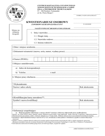 kwestionariusz osobowy - centrum kształcenia ustawicznego