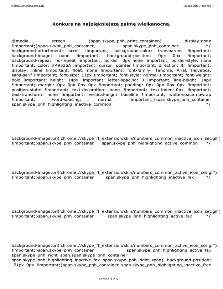 Regulamin Konkursu na najpiękniejszą palmę wielkanocną REGULAMIN KONKURSU NA
