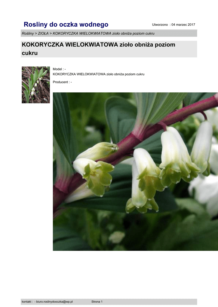 Rosliny do oczka wodnego Utworzono : 04 marzec 2017 Rośliny > ZIOŁA > KOKORYCZKA WIELOKWIATOWA zioło obniża poziom cukru KOKORYCZKA WIELOKWIATOWA zioło obniża poziom cukru Model : KOKORYCZKA WIELOKWIATOWA zioło obniża poziom cukru Producent : - kontakt : - [email protected] Strona 1 Rosliny do oczka wodnego Utworzono : 04 marzec 2017 Rośliny > ZIOŁA > KOKORYCZKA WIELOKWIATOWA zioło obniża poziom cukru KOKORYCZKA WIELOKWIATOWA zioło obniża poziom cukru kontakt : - [email protected] Strona 2 Rosliny do oczka wodnego Utworzono : 04 marzec 2017 Rośliny > ZIOŁA > KOKORYCZKA WIELOKWIATOWA zioło obniża poziom cukru KOKORYCZKA WIELOKWIATOWA zioło obniża poziom cukru kontakt : - [email protected] Strona 3 Rosliny do oczka wodnego Utworzono : 04 marzec 2017 Rośliny > ZIOŁA > KOKORYCZKA WIELOKWIATOWA zioło obniża poziom cukru KOKORYCZKA WIELOKWIATOWA zioło obniża poziom cukru kontakt : - [email protected] Strona 4 Rosliny do oczka wodnego Utworzono : 04 marzec 2017 Rośliny > ZIOŁA > KOKORYCZKA WIELOKWIATOWA zioło obniża poziom cukru KOKORYCZKA WIELOKWIATOWA zioło obniża poziom cukru Doskonała roślina wieloletnia do obsadzania nieco wilgotnych miejsc w ogrodzie, lubi towarzystwo roślin cieniolubnych, przede wszystkim paproci i z nimi doskonale się prezentuje. Nadaje się na kwiat cięty, doskonale wygląda w bukietach i potrafi dość długo cieszyć nas swoim urokiem. Odwar z kłączy, napar z ziela oraz wyciąg z kłącza lub ziela na słabym alkoholu (20-30%) zażywane przez dłuższy czas obniżają poziom cukru i cholesterolu we krwi. Zwiększają siłę i energię skurczu mięśnia sercowego oraz szybkość i głębokość rozkurczu. Przedłużają pauzę rozkurczową, zwalniając przy tym czynność serca. Pod wpływem kokoryczki komory serca lepiej wypełniają się krwią, energiczniej i silniej tłoczą krew do tętnic, ponieważ zwiększa się pojemność wyrzutowa komór. Krążenie krwi ulega znacznej poprawie, co jest szczególnie ważne w przypadku zmian zwyrodnieniowych naczyń w przebiegu cukrzycy. Zmniejsza się zastój w krążeniu żylnym. Działanie to uwyraźnia się po 3-4-tygodniowym regularnym zażywaniu i wysyceniu tkanek składnikami nasercowymi. Saponiny i flawonoidy kokoryczki wspomagają wydalanie szkodliwych produktów przemiany materii, np. ciał ketonowych. Kokoryczka działa również wyraźnie przeciwobrzękowo, przeciwzapalnie, moczopędnie, uspokajająco i antyseptycznie. Obniża ciśnienie tętnicze krwi. Usuwa obrzęki zastoinowe kończyn dolnych. W przypadku cukrzycy można zażywać kokoryczkę w formie naparu i wina. Napar sporządza się zalewając 1 łyżkę rozdrobnionego ziela kokoryczki 1 szklanką wrzącej wody. Po 30 minutach napar przecedzić. Zażywać rano i wieczorem po � szklanki naparu, przez 1 miesiąc. W razie nudności dawkę obniżyć do 3 łyżek naparu 2 razy dziennie. Po 3-tygodniowej przerwie leczenie wznowić. Odwar Decoctum z kłączy kokoryczki przygotowuje się zalewając 40-50 g rozdrobnionego surowca 0,5 l wody. Gotować 10 minut, odstawić na 30 minut pod przykryciem, przecedzić. Zażywać podobnie jak napar. Wino kokoryczkowe Vinum Polygonati sporządza się zalewając świeże lub suche rozdrobnione kłącze, albo ziele (100 g) ciepłym lub gorącym winem wytrawnym, białym lub czerwonym (500 g). W szczelnym słoju lub butli macerować 14 dni, po czym przefiltrować. Zażywać 1-2 razy dziennie po 15-25 ml. Odwar z kłączy kokoryczki - Decoctum Polygonati jak i odpowiednio rozcieńczone wino kokoryczkowe wodą mineralną (1:1) działają przeciwzapalnie na skórę i błony śluzowe. Posiadają właściwości wybielające i oczyszczające cerę. Tonizują naczynia krwionośne, usuwają zaczerwieniania i krostki. Okłady z ciepłego odwaru na okolice oczu działają odżywczo, przeciwobrzękowo i antyseptycznie, przyczyniają się do ustępowania worków i sińców pod oczami. Cena : 1,99 zł Brutto ( 1,84 zł Netto) Dostępność: Produkt dostępny w naszym sklepie od 09 wrzesień 2013 kontakt : - [email protected] Strona 5