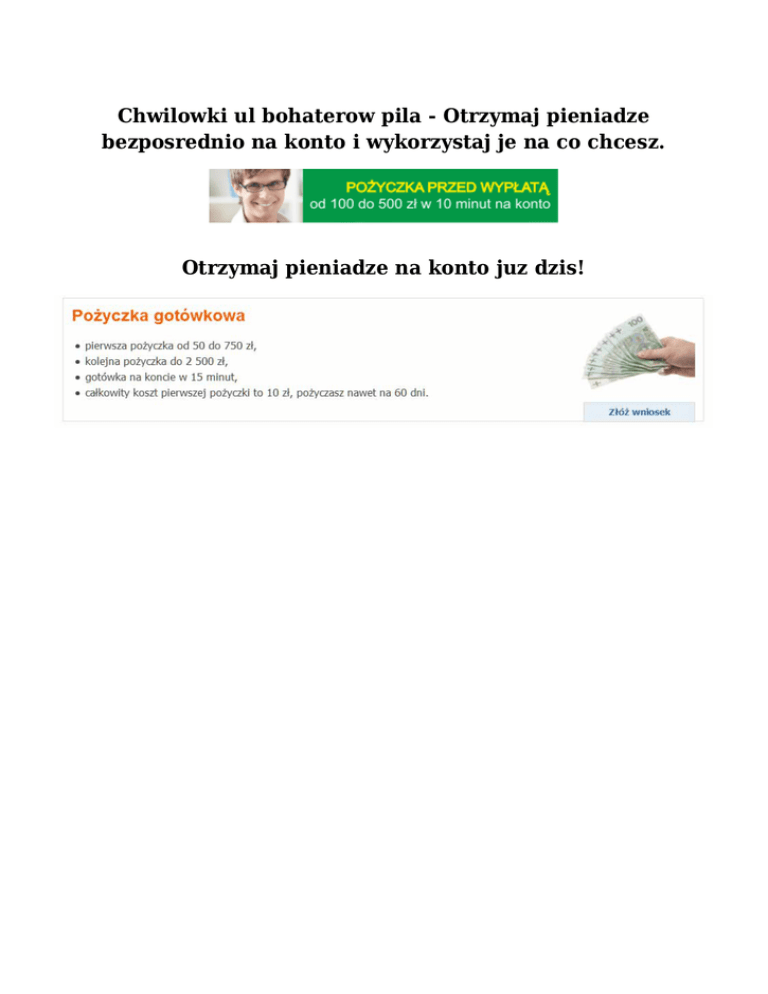 Chwilowki ul bohaterow pila - Otrzymaj pieniadze bezposrednio na